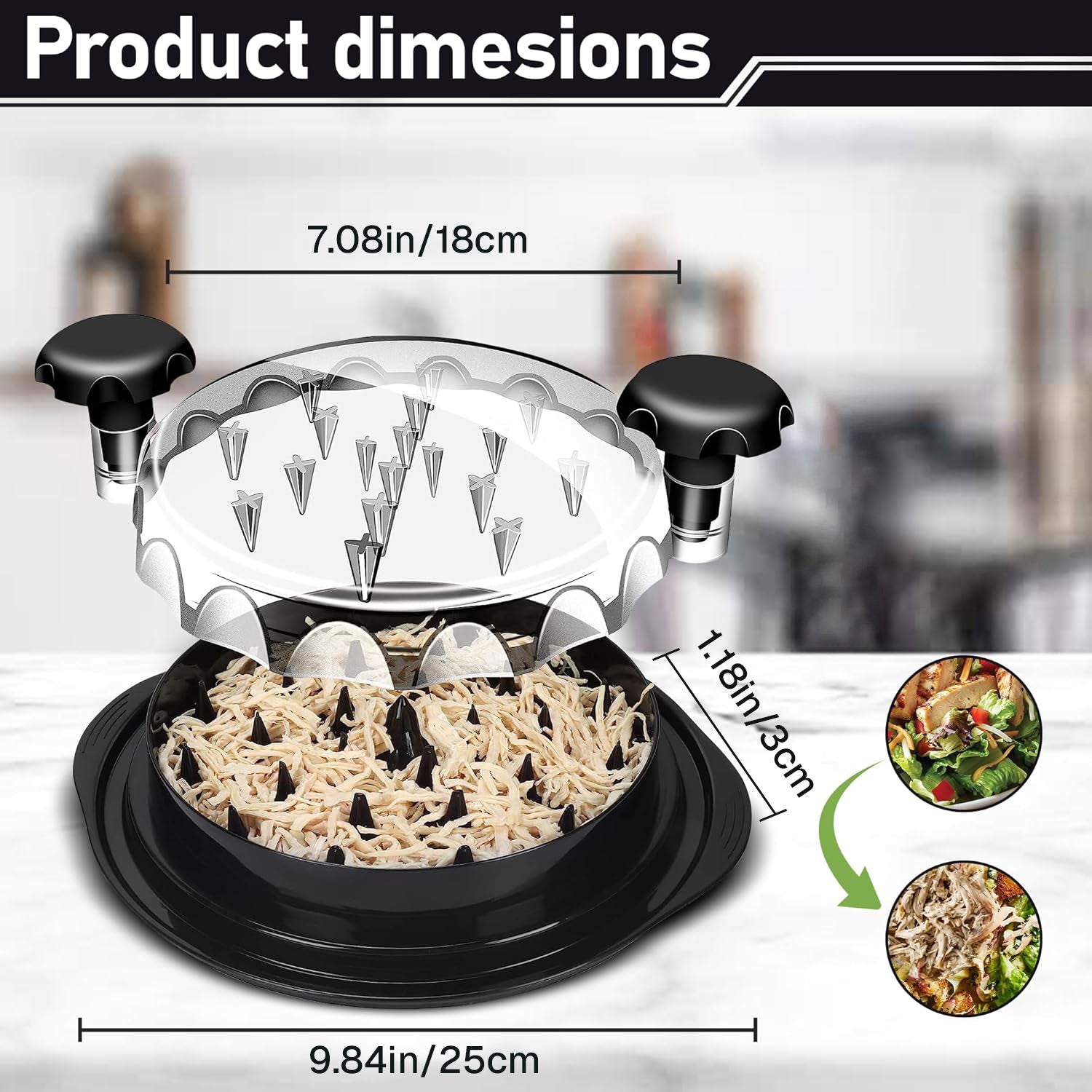 - 【Easy to Use & Time-Saving】Simply place cooked meat inside, secure the lid, and twist the handle to shred evenly in seconds. The rotating spike design creates perfectly shredded meat with minimal effort—no knives, forks, or hand strain required. Ideal for chicken, pork, beef, and more.