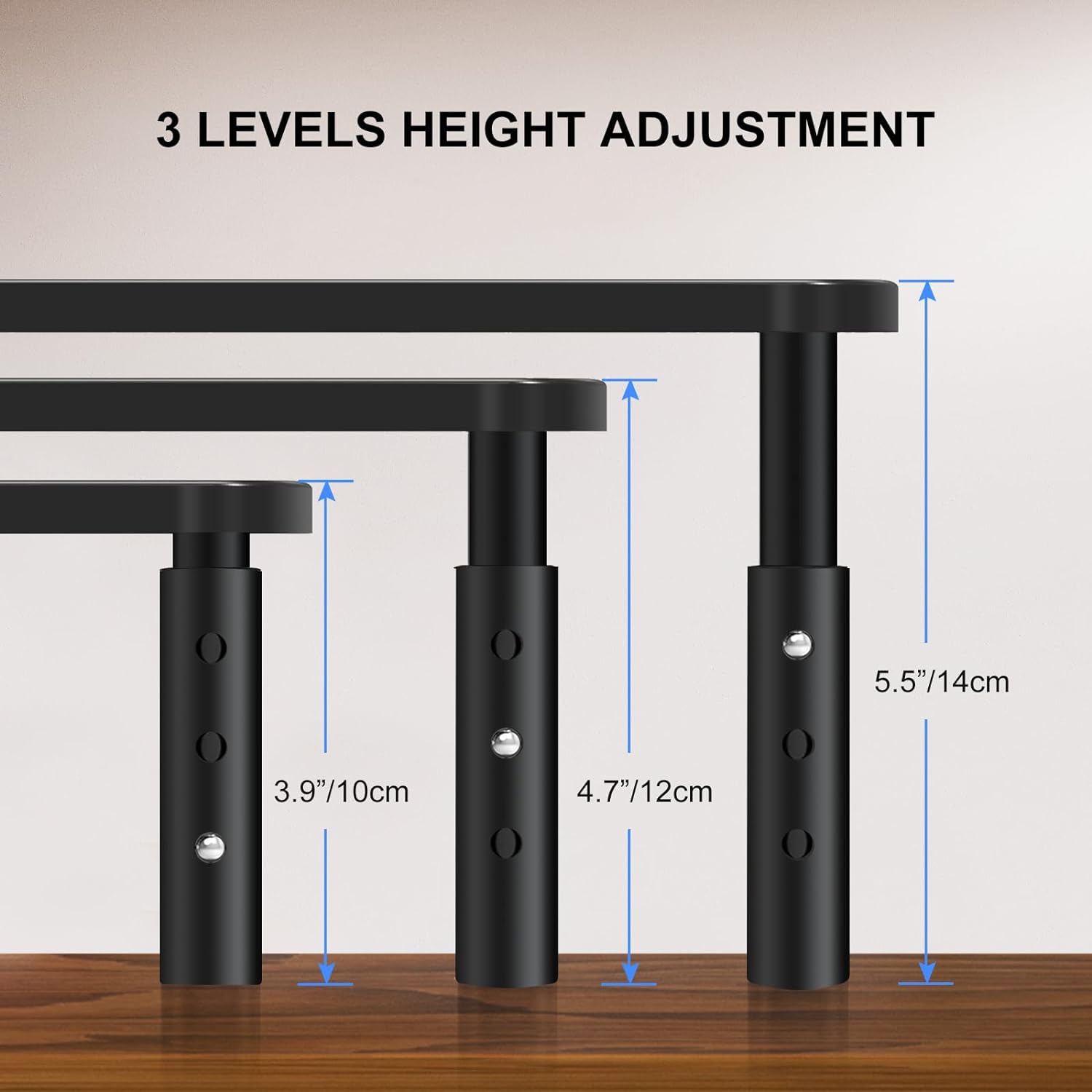 - 【Ergonomic Height Adjustment】This monitor stand features 3 height settings at 3.9”, 4.7”, and 5.5” tall. Choose the most comfortable and ergonomic viewing height by pressing the buttons on the legs to adjust the stand.