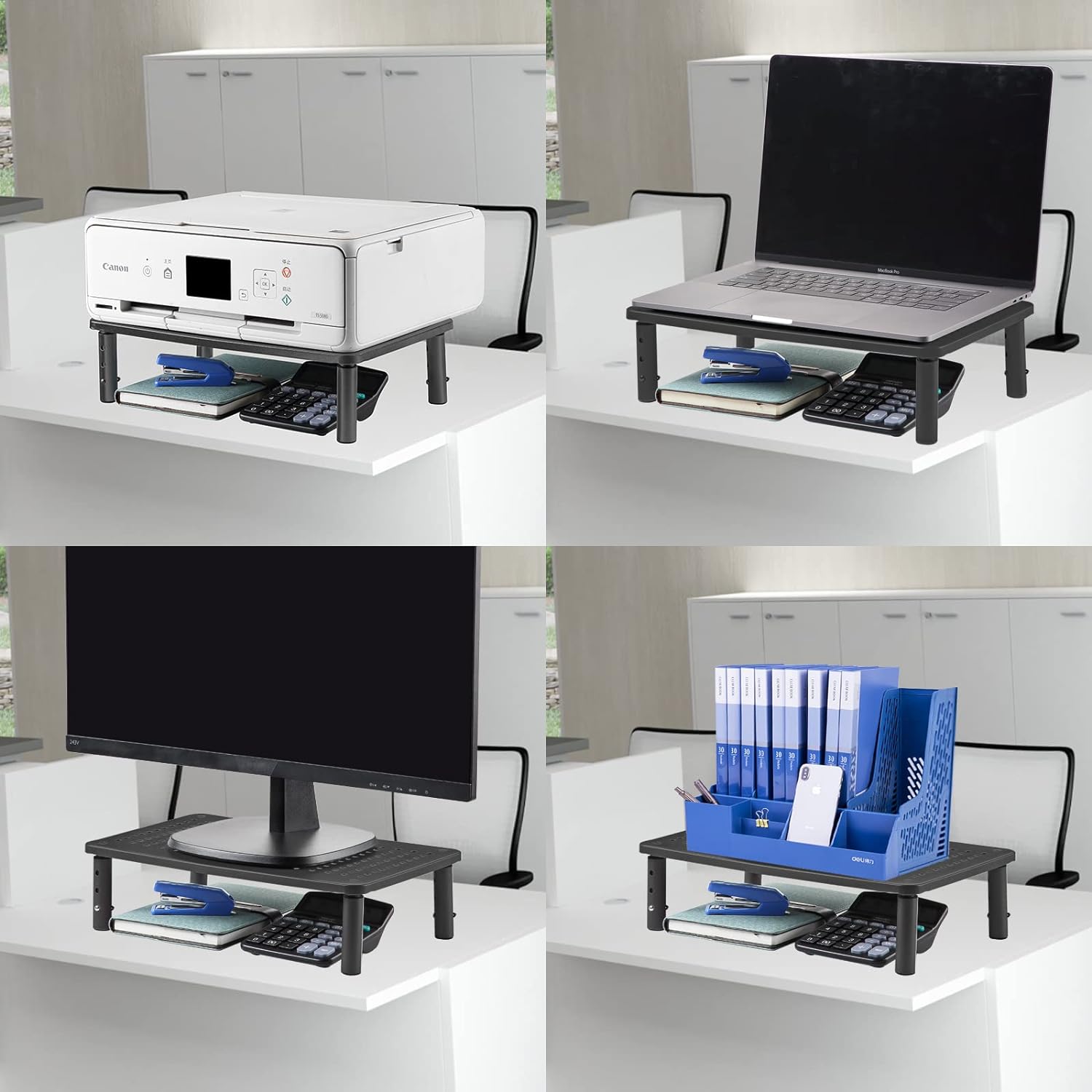 - 【Desk Organizer】Computer monitor stand riser can save more space on your desk, you can put things like papers, memos, notebooks, earphones, power banks, staplers, book under it to keep your workstation organized and tidy.