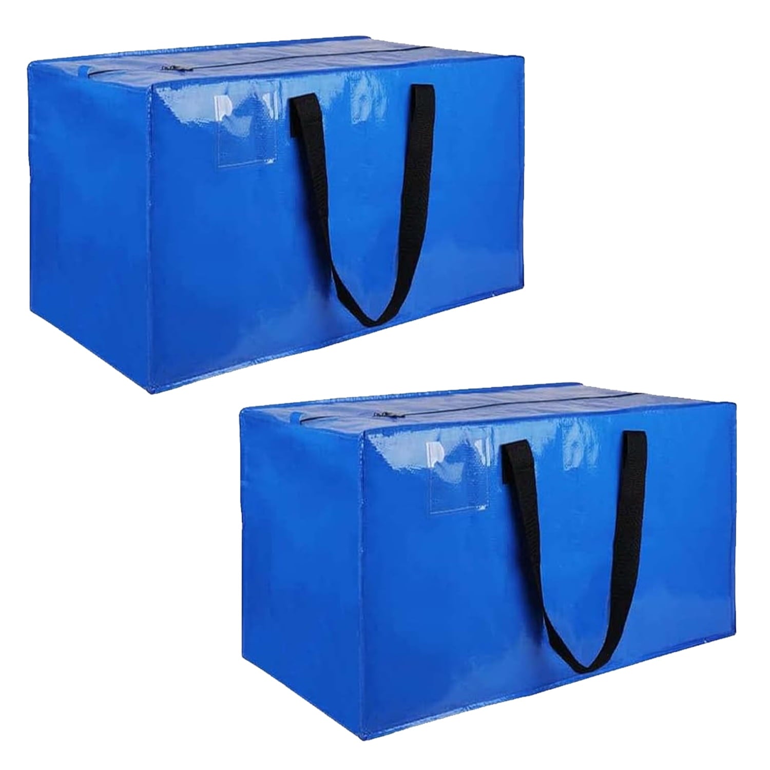 Behome 2 Pack Moving Bags Heavy-Duty Extra Large, Blue Moving Totes with Zippers Handles for Space Saving, Family & Dorm Room Moving Supplies