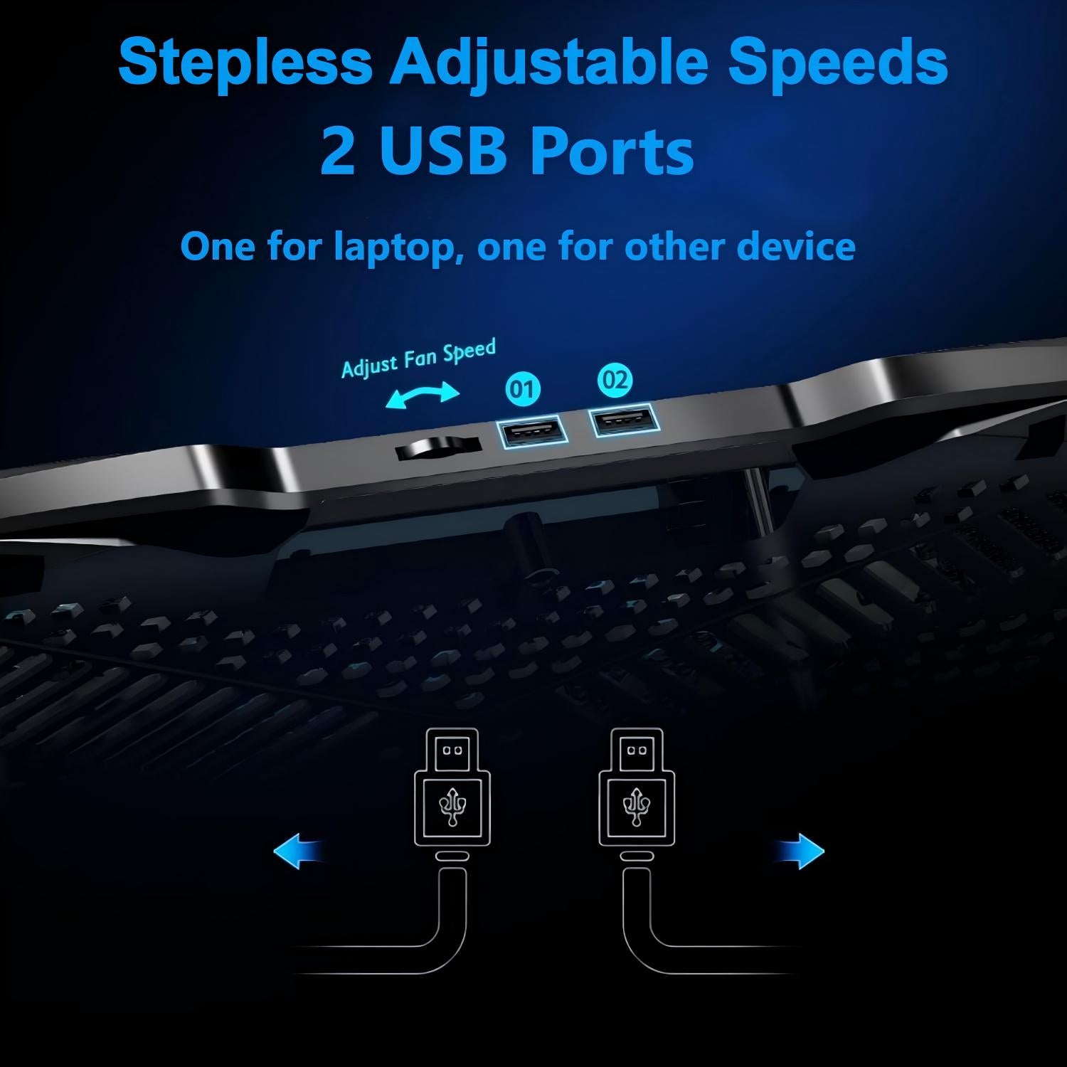 【2 USB Ports】Featuring two USB ports—one to power the cooler and another to connect external devices such as keyboards, mice, or phones. Ideal for students and professionals who need to charge accessories or power small gadgets while using their laptop.