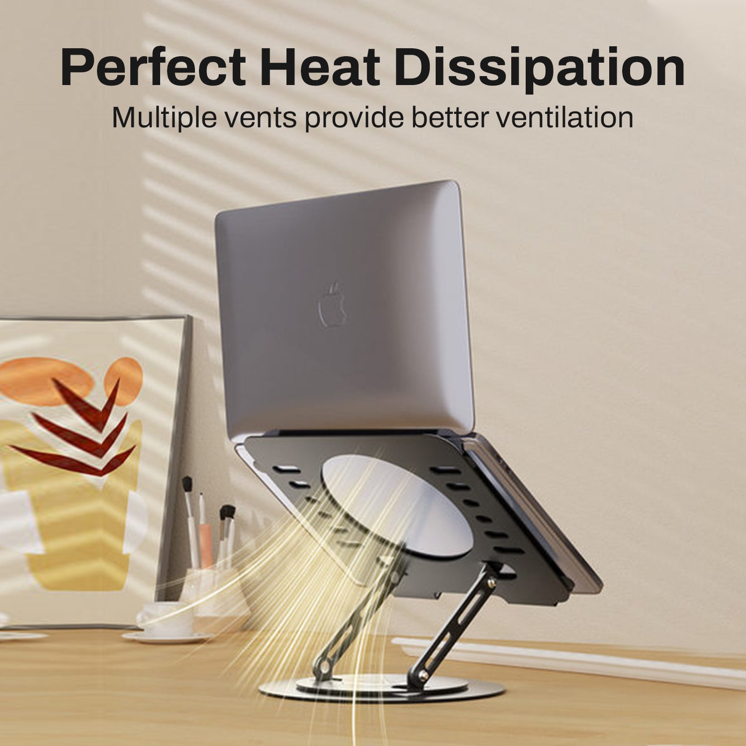 - 【360°Rotation】:The computer stand with 360° rotating base, 360° rotation connected with the base is more flexible, the computer stand allows you to rotate the laptop to any angle.