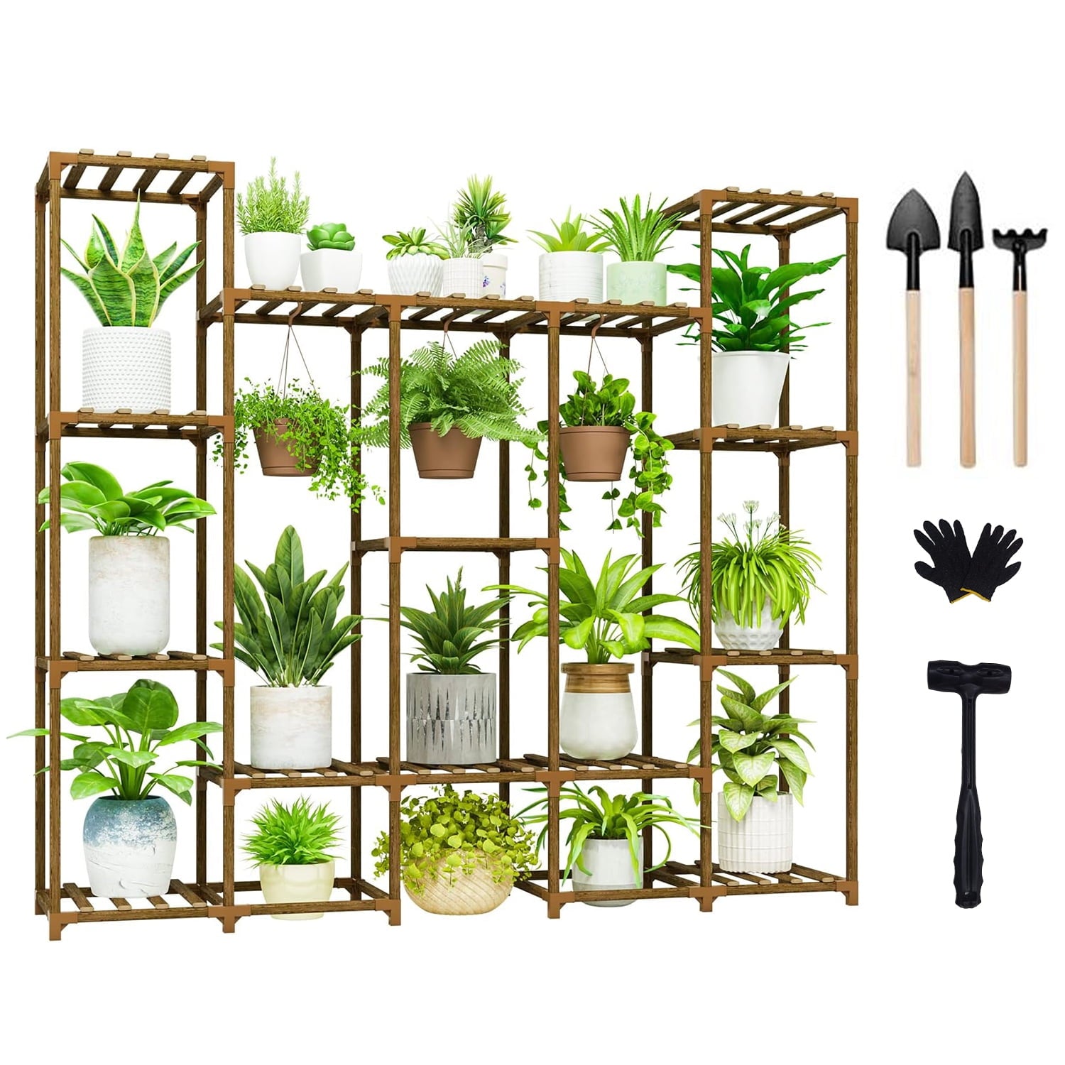 - 【Easy to Assemble】Triangle connectors make the plant shelf more sturdy and easier to install. We have prepared instructions, hammers and gloves in the package to make it easier for you to assemble the plant stand.