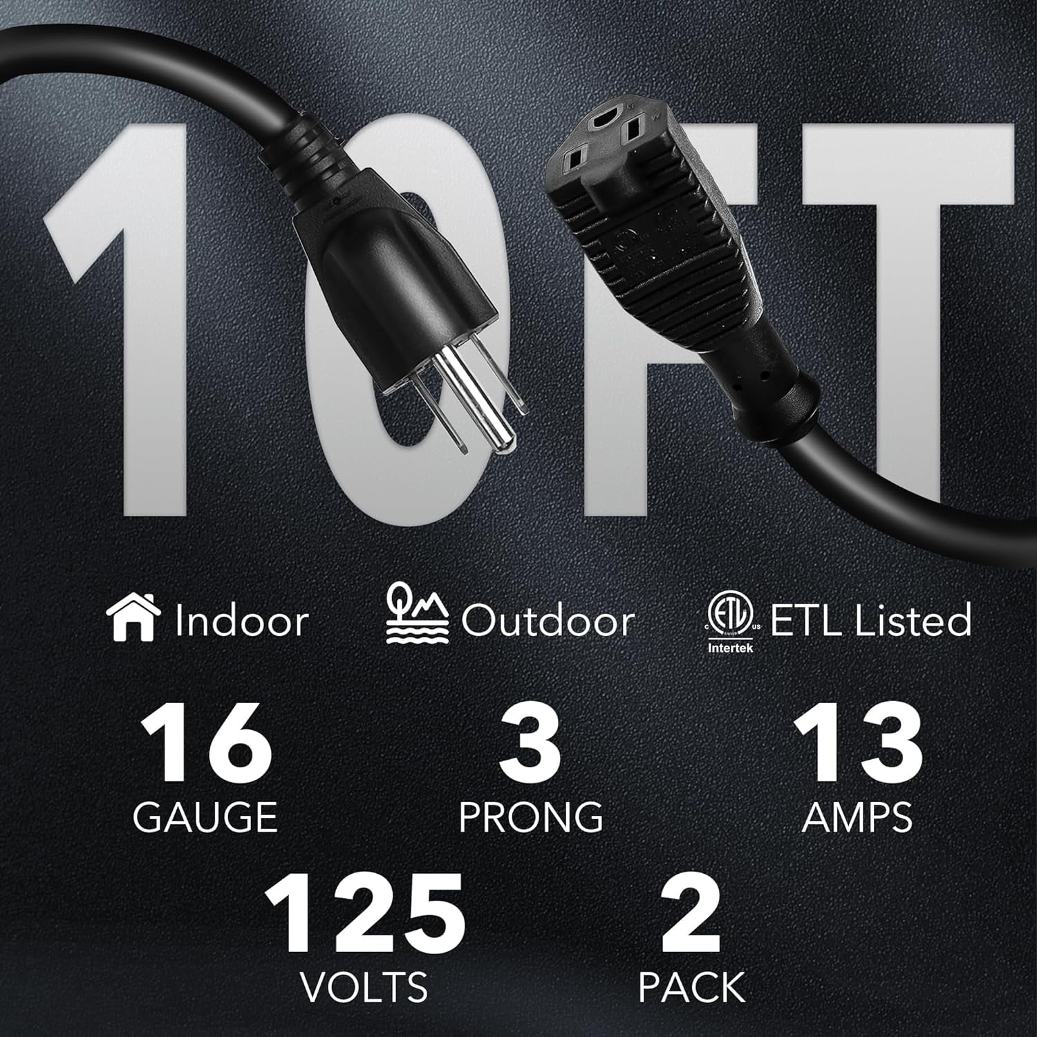 - 【Indoor/Outdoor】This 10-feet black extension cord with 13-amp, 125-volt, 1,625-watt rating is compatible with most appliances and devices and is also perfect for Halloween, Christmas decorations!