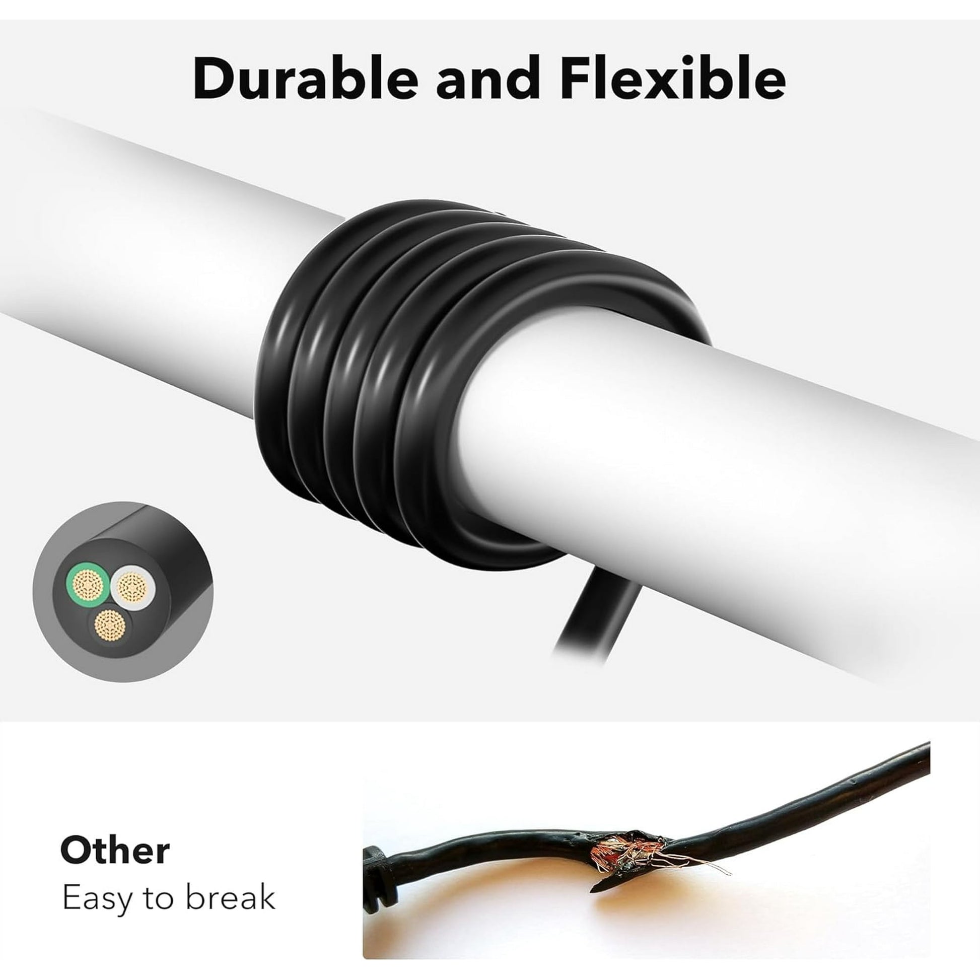- 【Safe to use】The plug end has a durable strain relief design that can undergo 3,000 large angle bends without breaking or fracturing. Premium insulation protects internal wires.