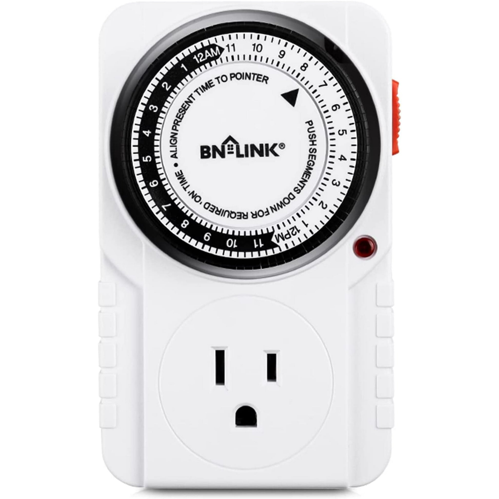 BN-LINK 24 Hour Plug-in Mechanical Timer Outlet, 3 Prong Light Timer, for Grounded Aquarium, Grow Light, Hydroponics, Pets, UL Listed