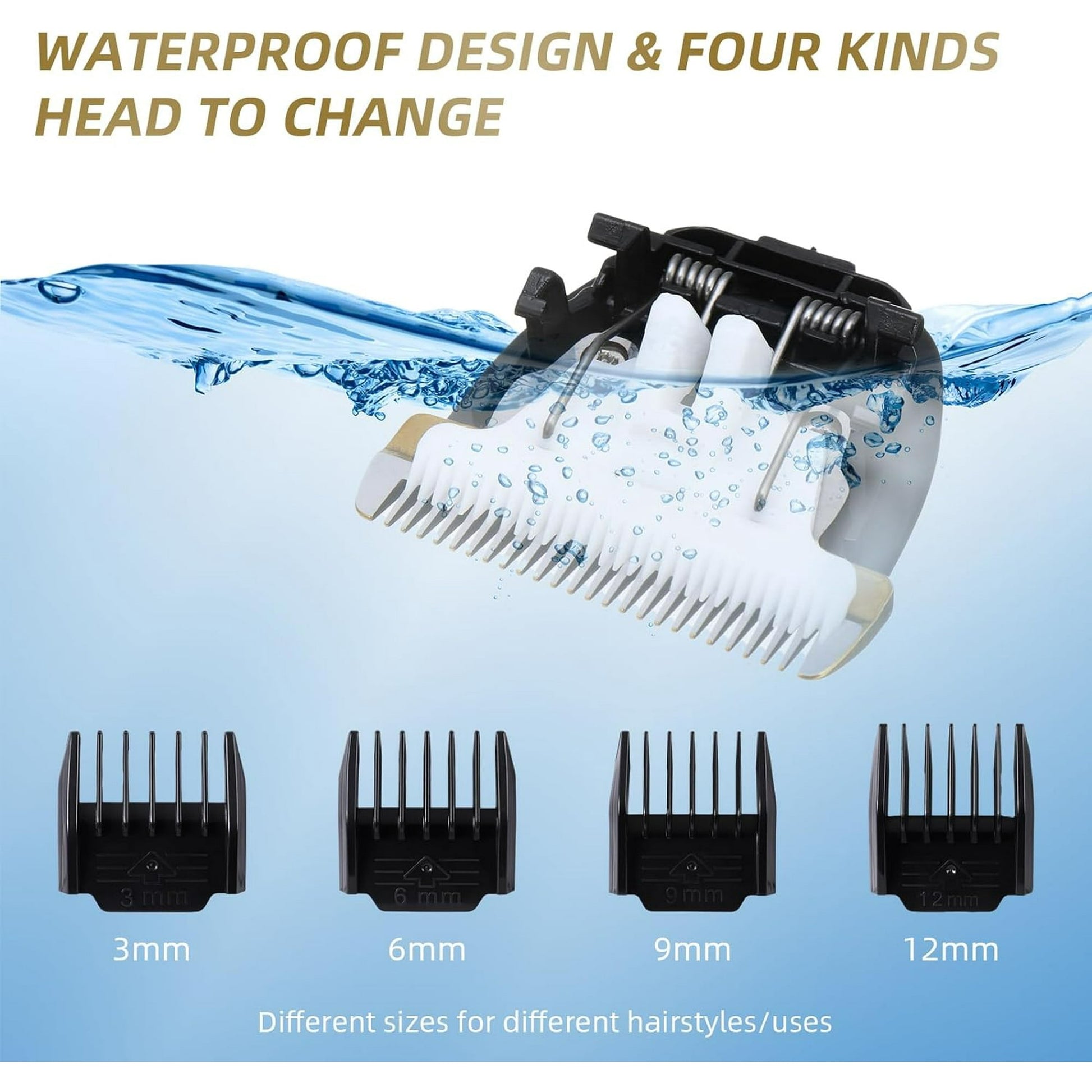 - 【4 Guard Combs(3mm/6mm/9mm/12mm)】The adjustable clipping comb is applicable for clipping hair of different lengths; and the detachable guide combs make for quick, easy comb changes and increased versatility.