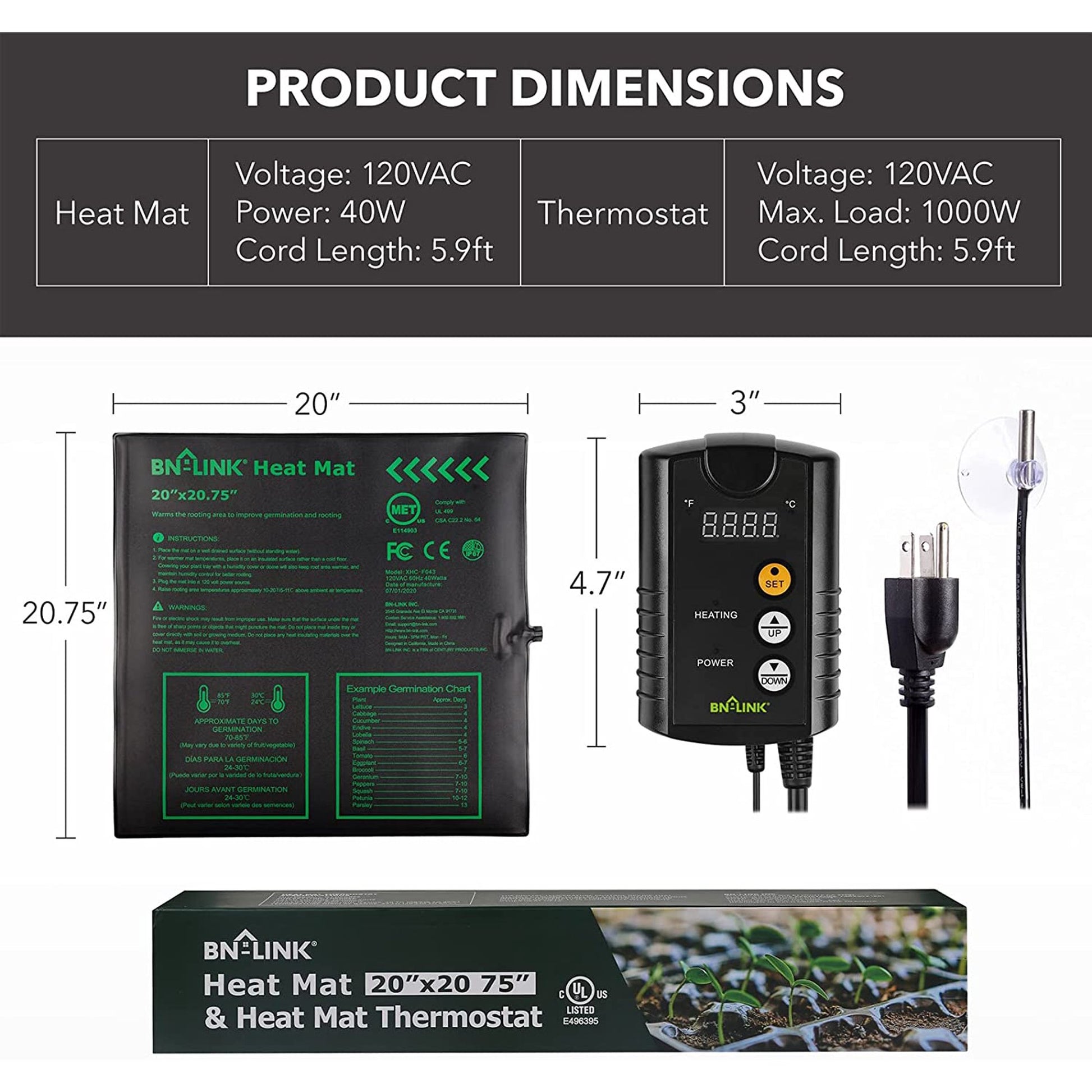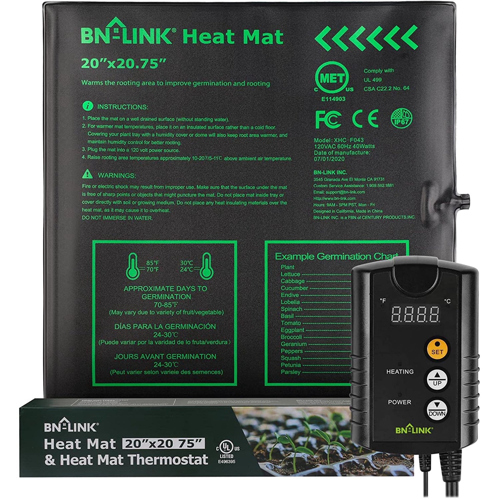 BN-LINK Durable Seedling Heat Mat Heating Pad 20" x 20.75" with Digital Thermostat Controller Combo Set Waterproof for Indoor Seed Starting and Plant Germination