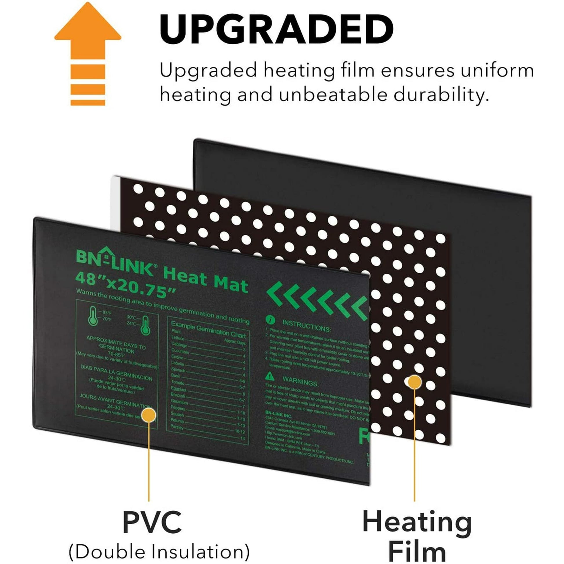 BN-LINK Durable Seedling Heat Mat Warm Hydroponic Heating Pad Waterproof 48" x 20.75" The BN-LINK Durable Seedling Heat Mat Warm Hydroponic Heating Pad Waterproof 48" x 20.75" inch is your perfect solution for providing constant warmth to either your pets, seeds, kombucha or anything else you may want to keep warm! Have peace of mind that your beloved furry/scaly buddy or plants are cozy and being properly nurtured all day and night.