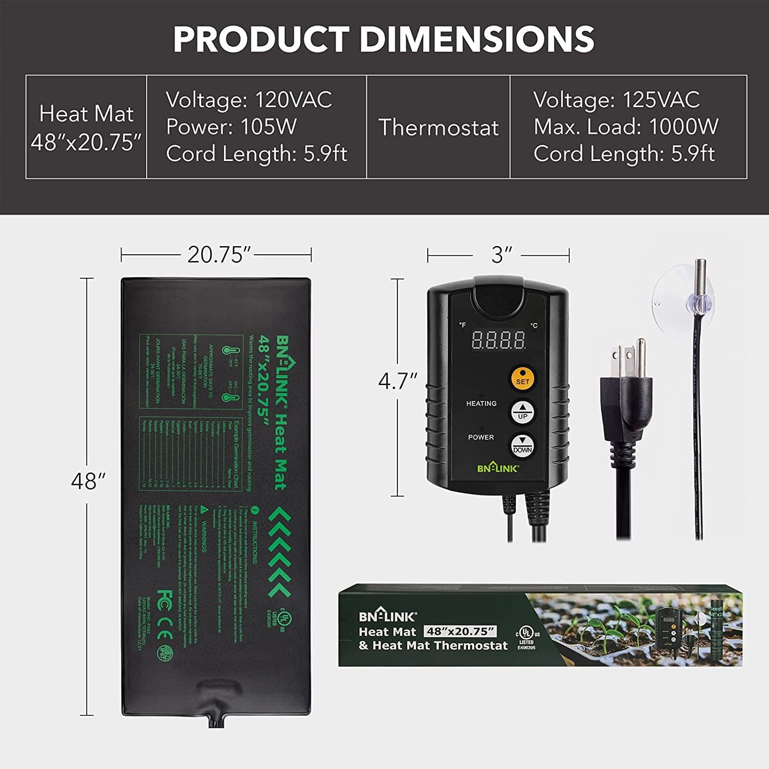 BN-LINK Durable Seedling Heat Mat Heating Pad 48" x 20.75" with Digital Thermostat Controller Combo Set Waterproof for Indoor Seed Starting and Plant Germination