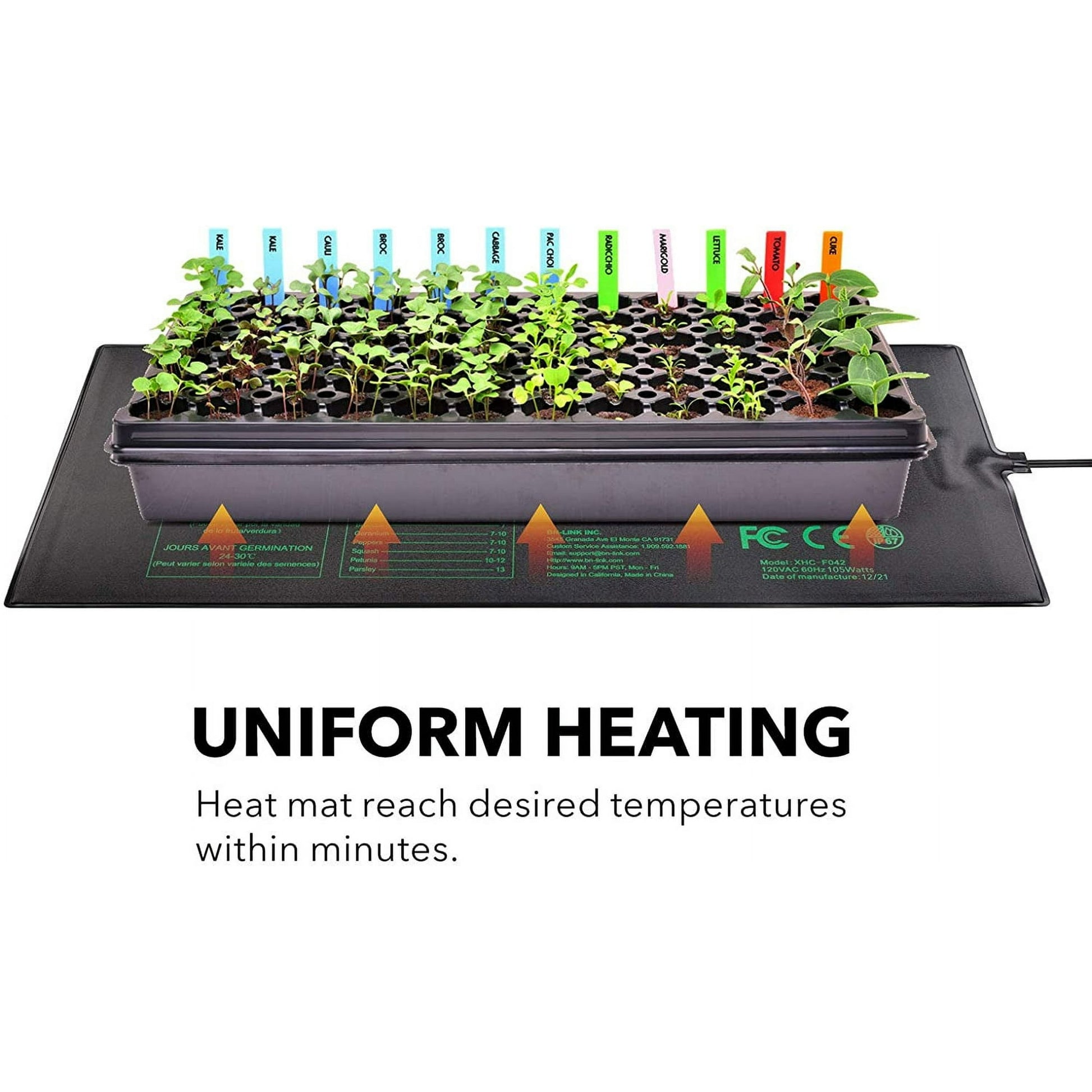 - 【CONSISTENT HEATING】The heating film and insulation allows the mat to reach the desired temperatures within minutes without burning your seeds and keep the roots of your plants warm. You can leave it on 24 hours a day without worry.