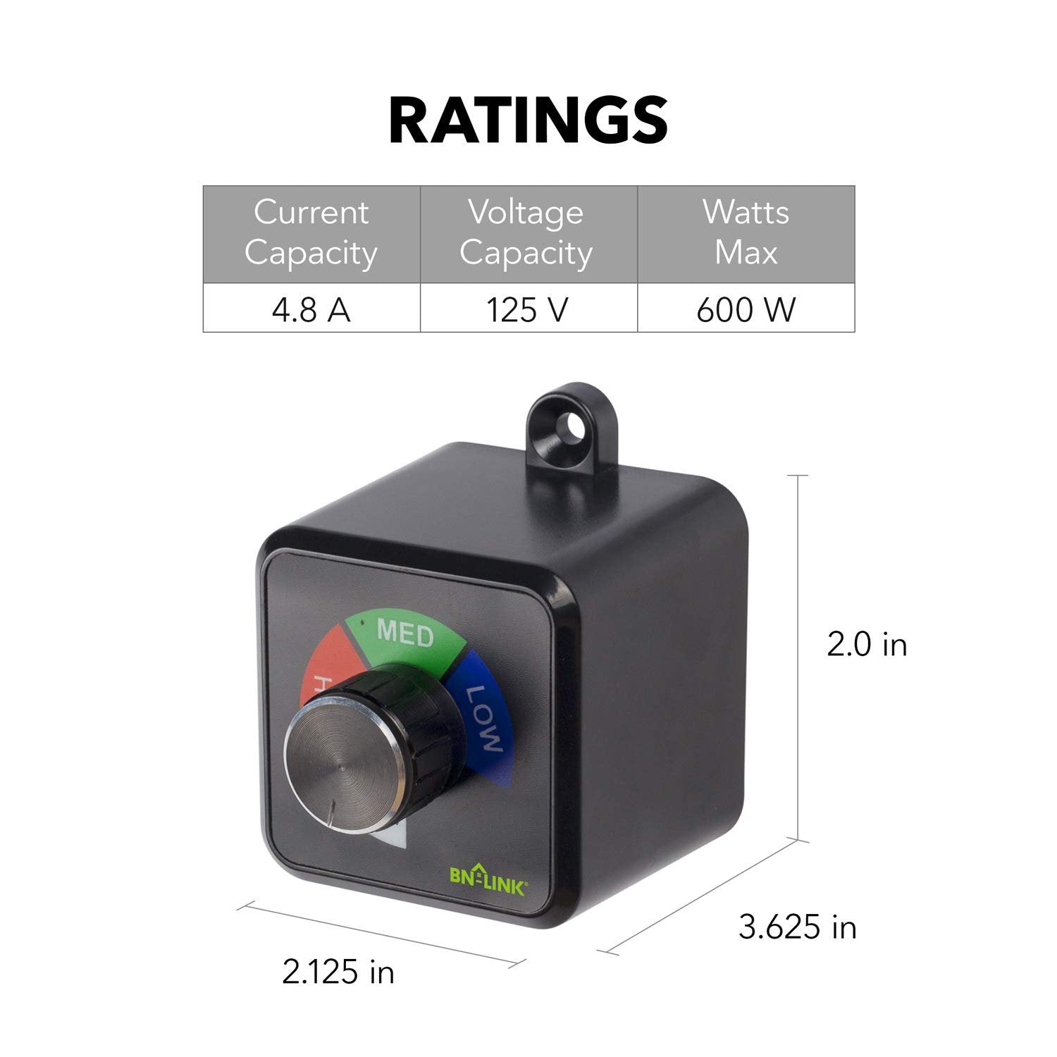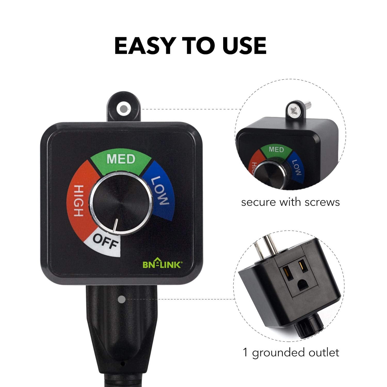 Description: Simple use the dial to increase or decrease fan motor speed. Make your life easier to control your inline duct fans with the BN-LINK Fan Speed Controller!Ultra-compact and plugs directly into an outlet, no messy wires. It can be widely used for exhaust fan, high velocity inline fan, mini blower and more. It's made of high quality material for high safety and long durability.