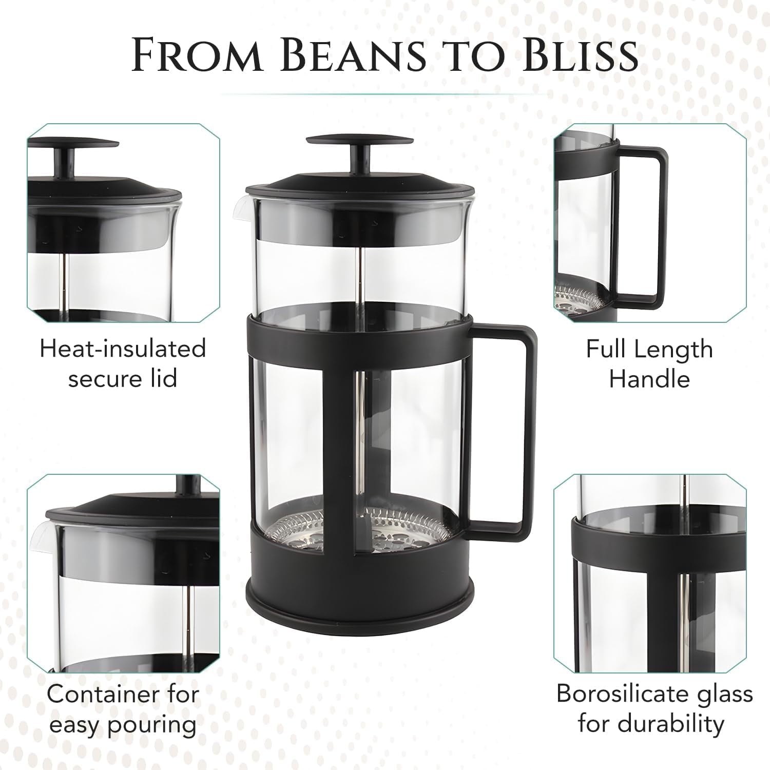- βππ’π‘π§π₯π’π π’π©ππ₯ ππ₯ππͺππ‘π:Β With our French press, you have control over the brewing time, water temperature, and coffee or tea quantity, allowing you to customize the taste and strength of your beverage.