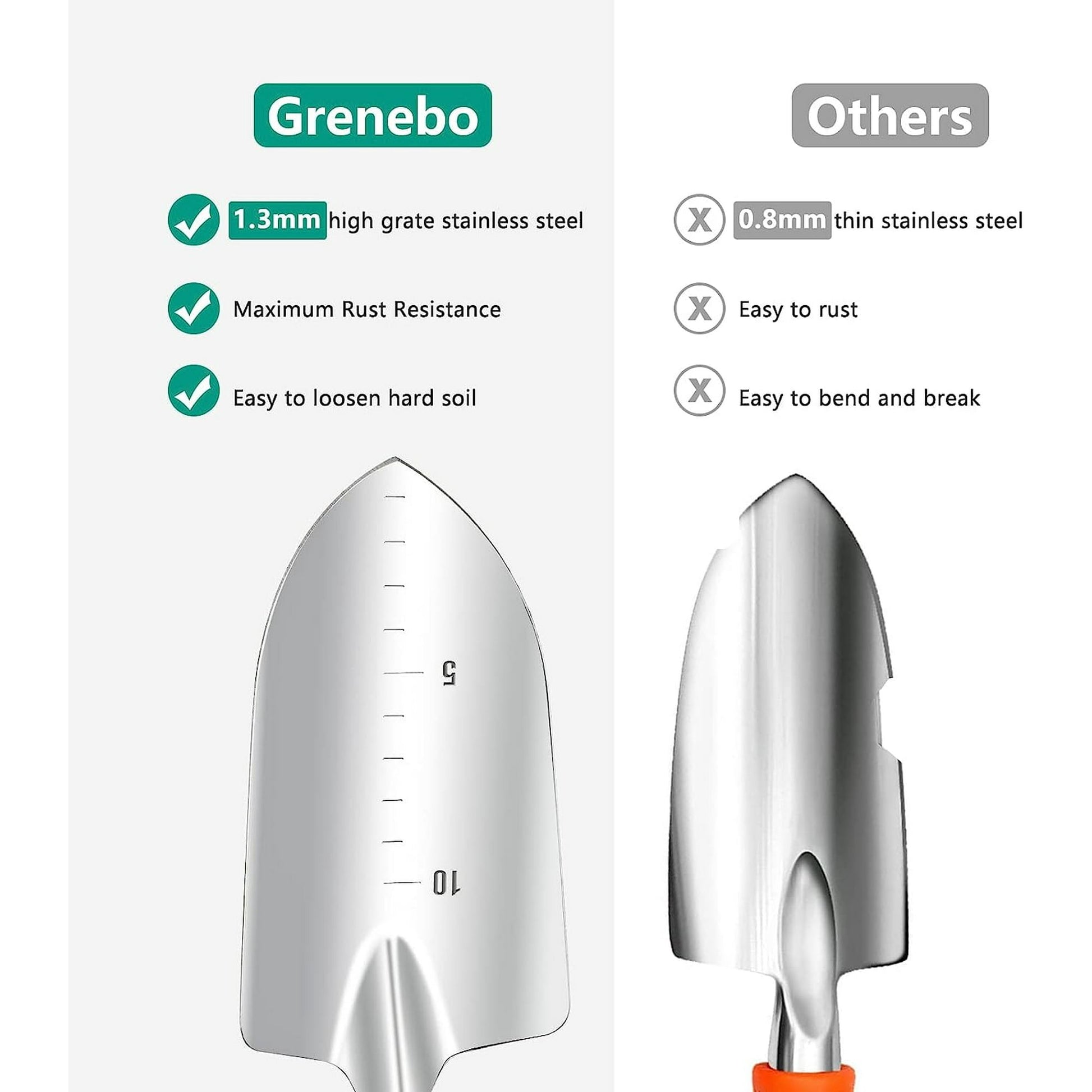 - 🌱[Premium Product Quality] Made of high-strength SK-5 carbon steel, this stainless steel gardening tools is durable and rust-proof. Moreover, with highly qualified material like this, these gardening tools are hardly deformed.