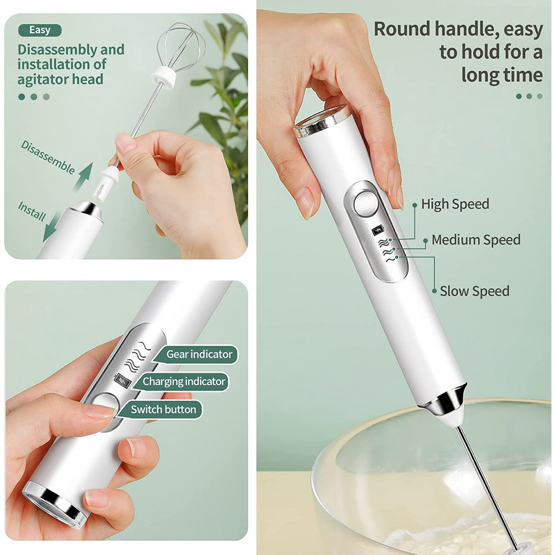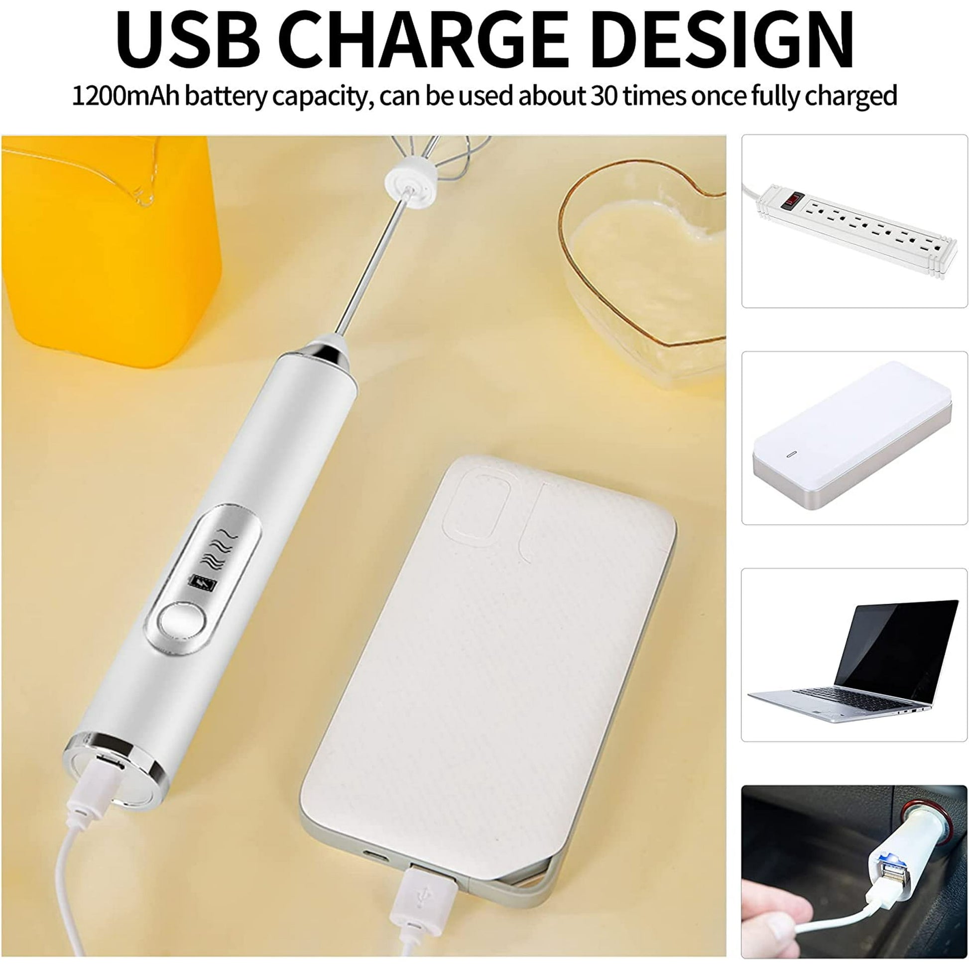 BN-LINK Handheld Milk Frother USB Rechargeable, with 2 Heads Coffee Whisk Foam Mixer, 3 Speeds Electric Mini Blender for Latte, Cappuccino, Hot Chocolate, Egg