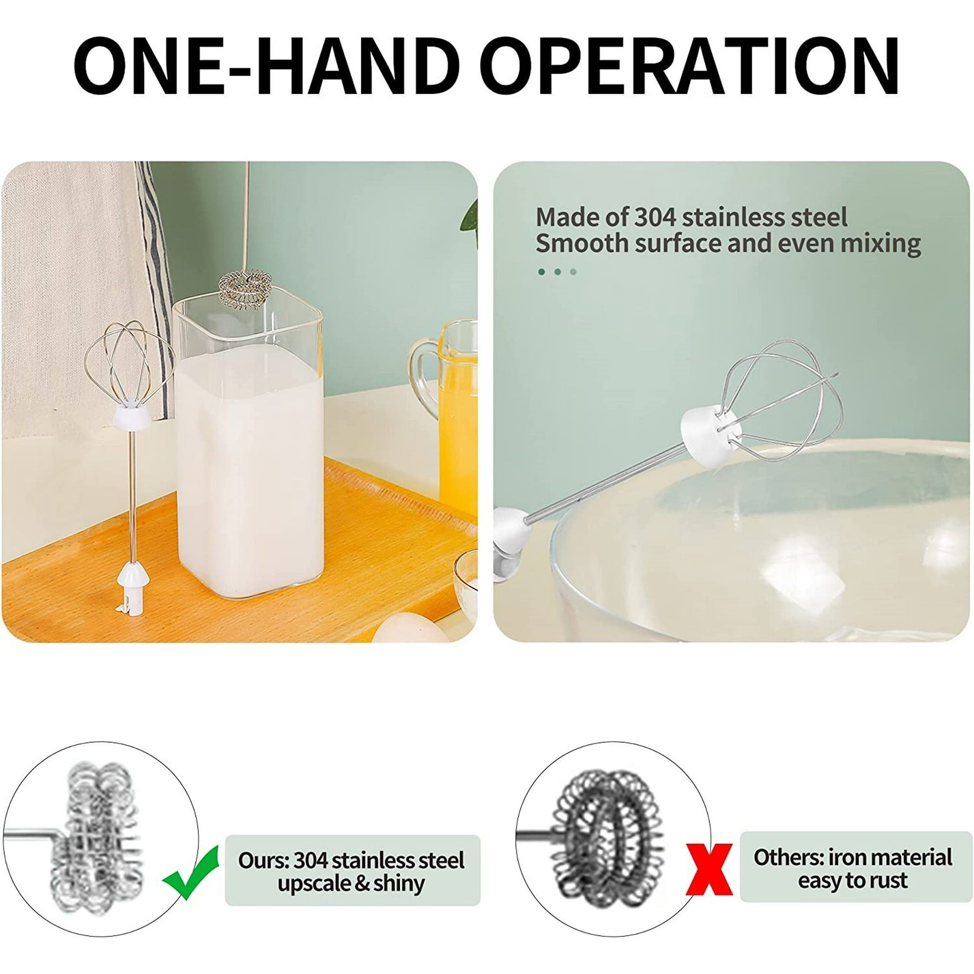 - ☕【2 Replaceable Stainless Whisks】Professional hand-held beverage blender includes 2 removable whisk heads. They are suitable for eggs and coffee, respectively, easy to disassemble and can be easily switched. It is a must-have product for baking. Enjoy the creamy texture of milk, coffee, milkshake or hot chocolate made with a coffee milk frother at home.