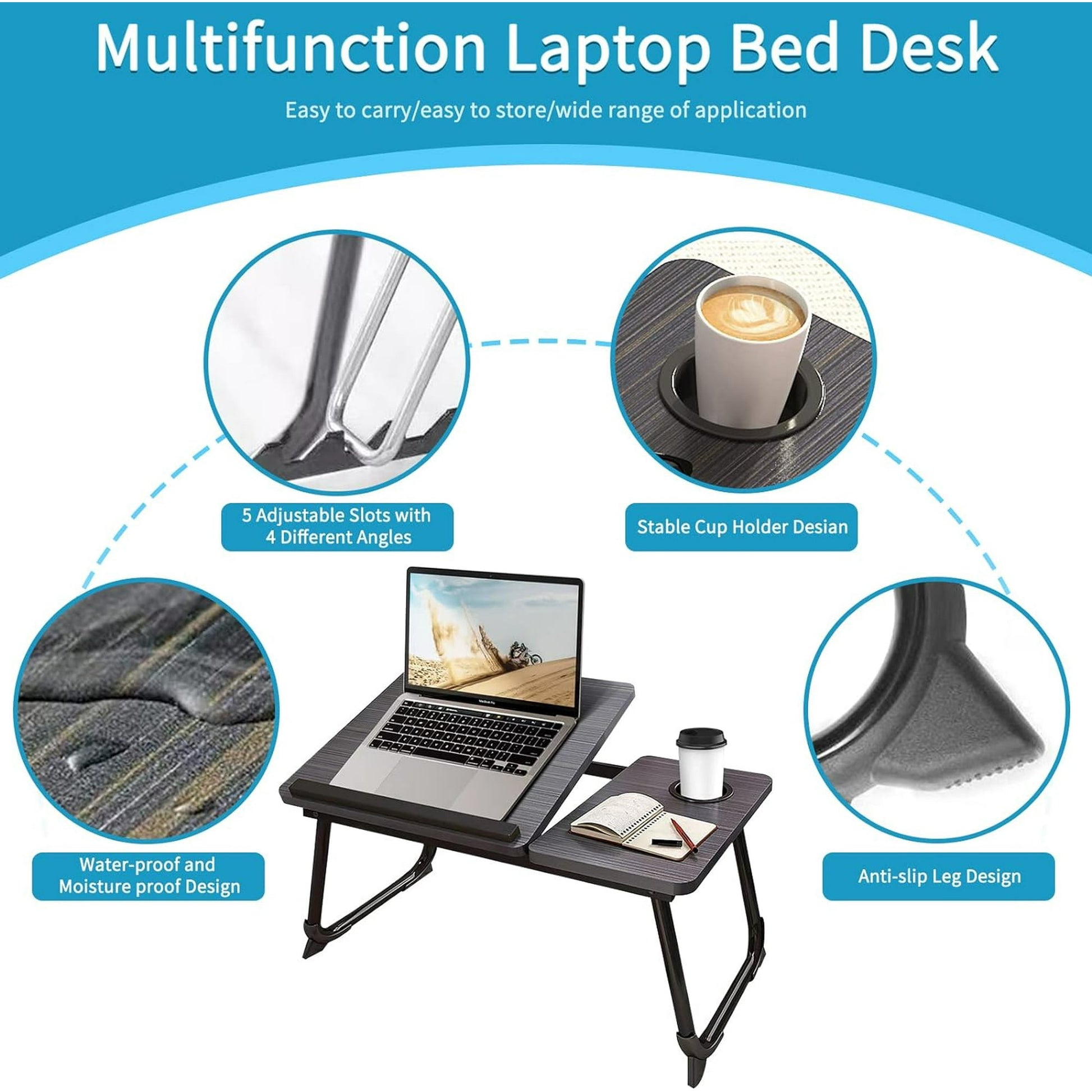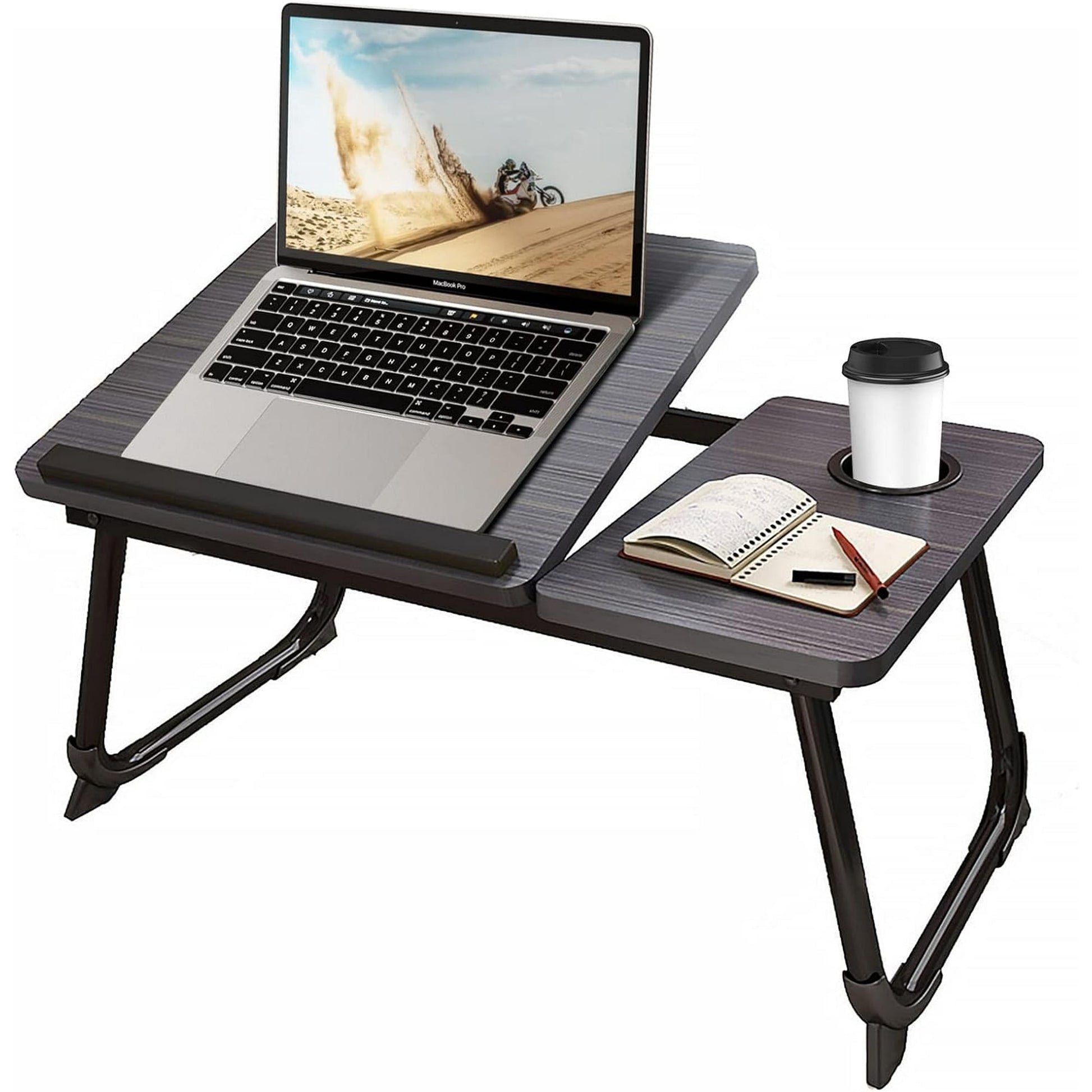 - 【ADJUSTABLE TRAY DESK&CUP HOLDER】This bed desk has 5 adjusted slots, which can make users neck and shoulder relax when using it as one laptop desk. The desk contains a cup holder as well which is convinient for you to reach drink when working or reading in bed.