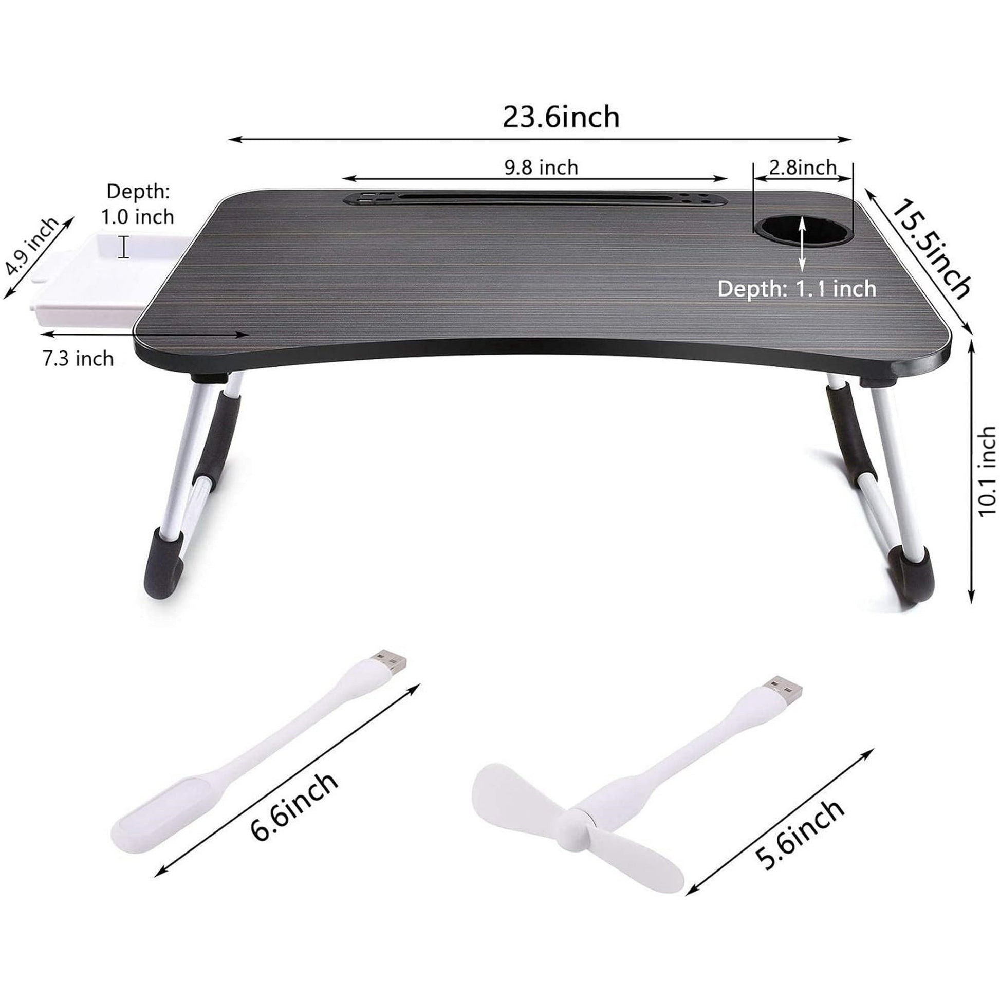- ✅【Multiple Uses】The foldable laptop desk does not need to be installed and can be used directly when opened. Product size: 23.6 inch x 15.5 inch x 10.1 inch. The laptop portable desk is very practical, you can put it on the bed, couch, or on the floor, when you go out camping, you can also bring the foldable laptop table, which can be used as a small picnic table. Especially the high-quality USB ports and drawers enhance the practicality of the laptop desk tray.