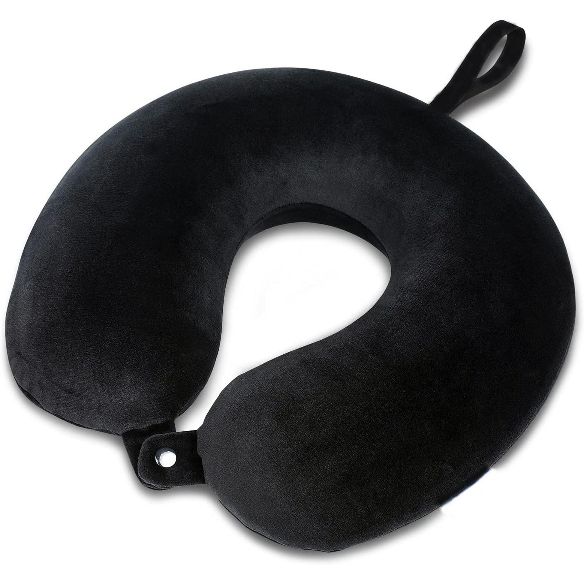 BN-LINK Memory Foam Travel Pillows for Airplanes - Neck Pillow for Traveling with Attachable Snap Strap Soft Washable Cover, Flight Pillow for Sleeping, Car, Home, Office, Black