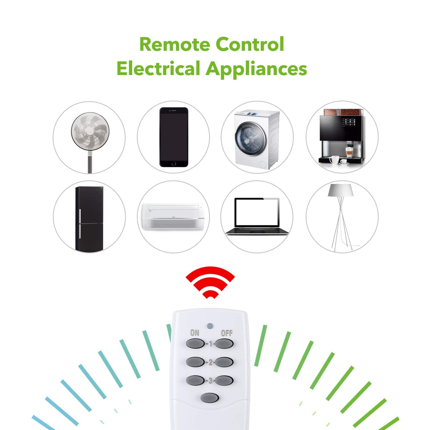 - SIMPLE CONVENIENCE: Use the remote or the outlets themselves to turn your appliances on and off. Great with almost any electronic device, including lights, air conditioners, heaters, audio sound systems, holiday decorations, and charging devices.