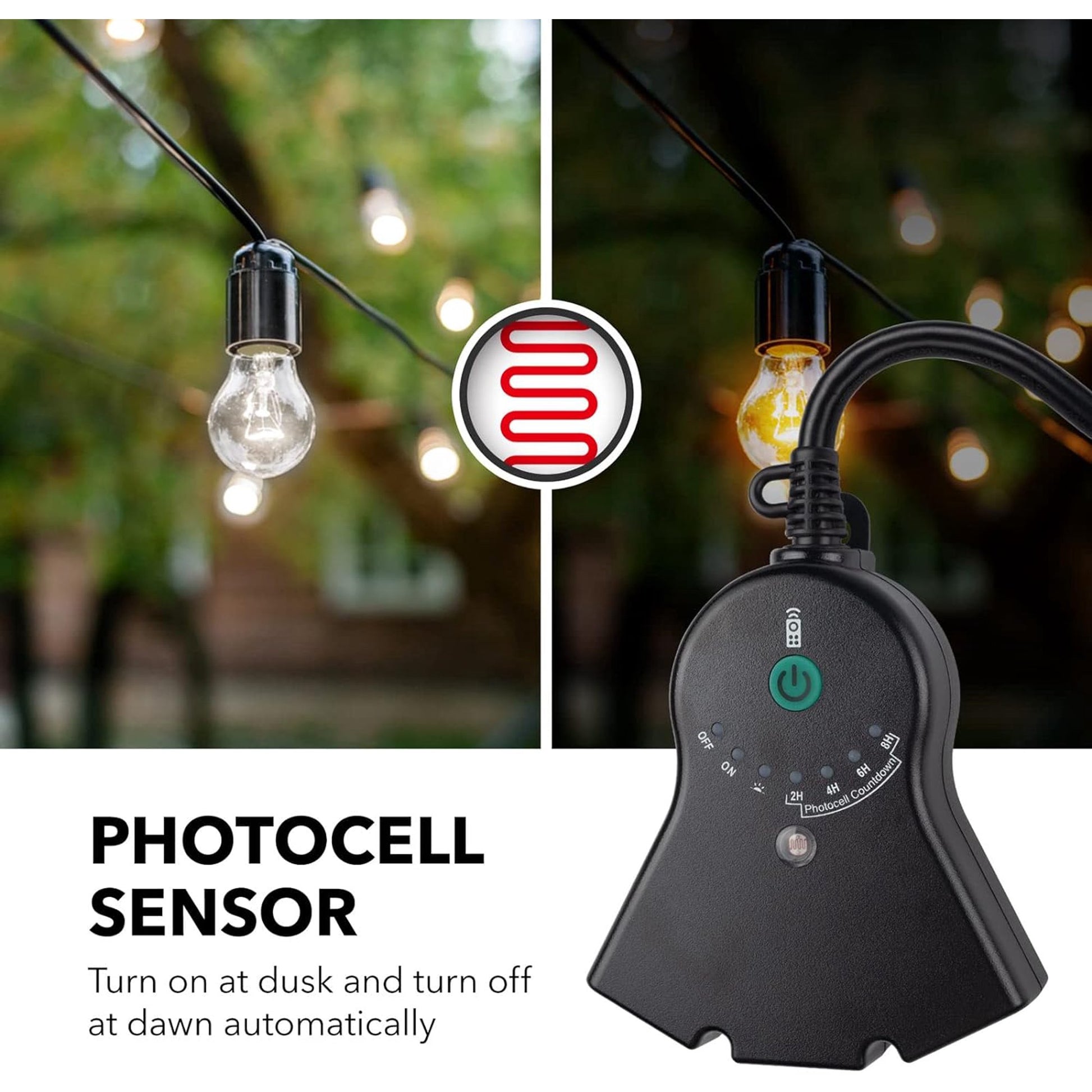 - ✓ RAINTIGHT & WEATHERPROOF OUTDOOR CONTROL: Our outdoor timer's smart photocell senses dusk/darkness and automatically turns on/off your lights. Use outdoors for your yard lighting, patio lighting, holiday decorations, and more! (Waterproof as long as unit is 1' above ground).