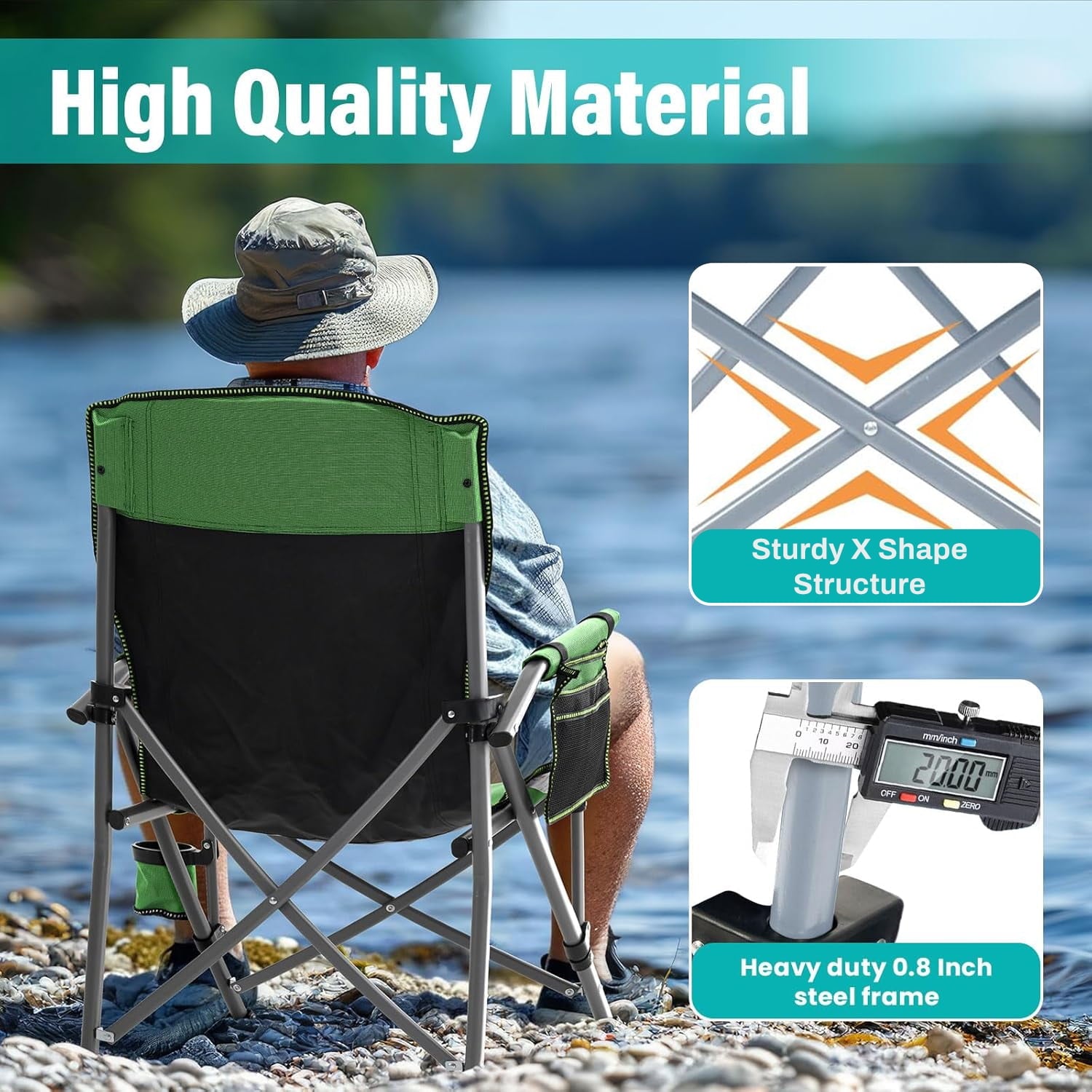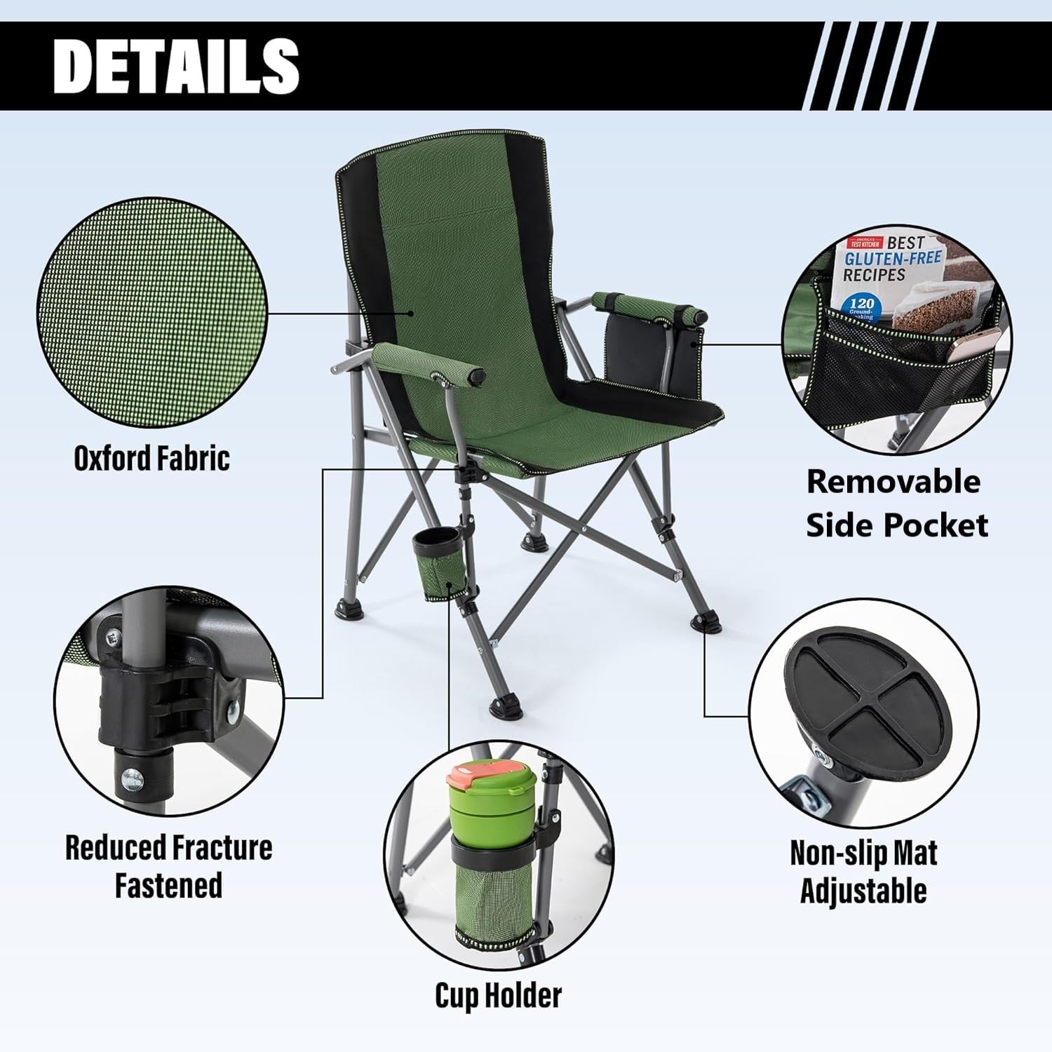 BN-LINK Oversized Folding Camping Chair, Heavy Duty Support 400 Lbs Portable Padded Arm Chair with Cup Holder and Side Pocket, for Beach, Fishing, Outdoor Activities
