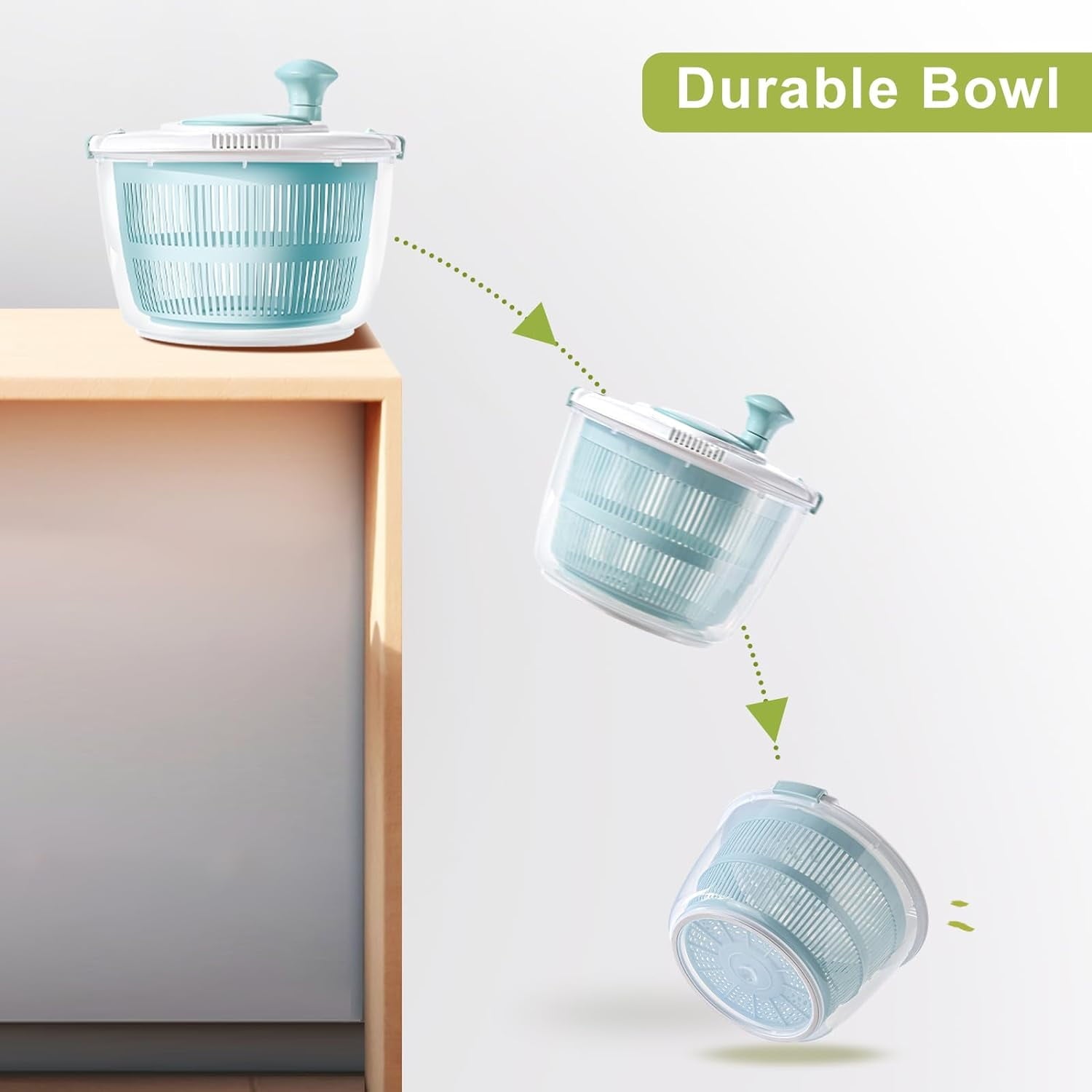 The BN-LINK Salad Spinner is an indispensable kitchen device with multiple uses. Not only is it an easy-to-use lettuce spinner, it will be one of your favorite large salad bowls and mixing bowls. For meal prep, you can both wash and dry salad greens, other vegetables, and fruits in seconds. The bowl features a soft, non-slip base, so it won't slide off your countertop while you're spinning.