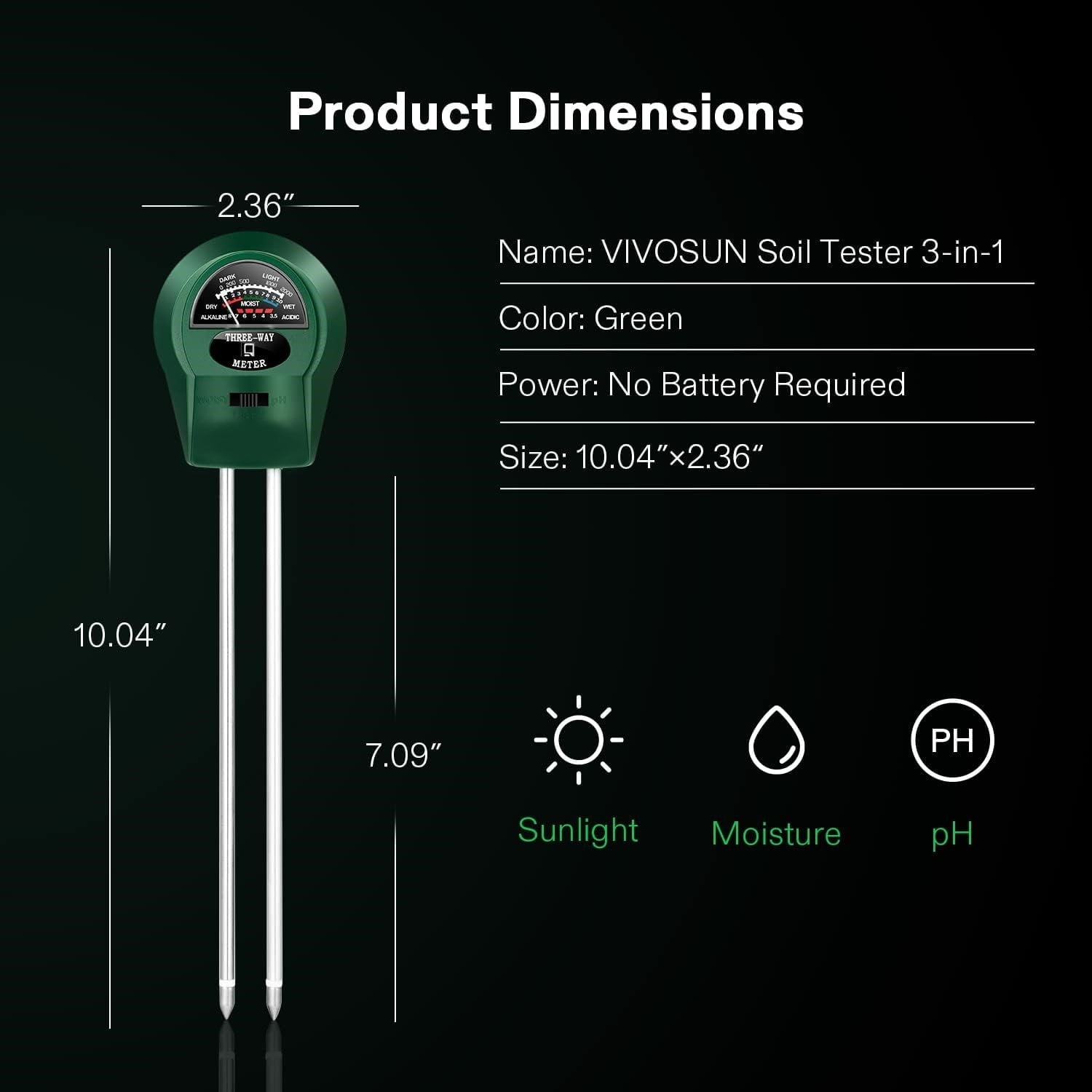 - 【Important Tips】Do NOT use it to test any liquids. Avoid using it in excessively hard or loose soil. If the soil is too dry water it before testing. Keep the probe clean and dry.