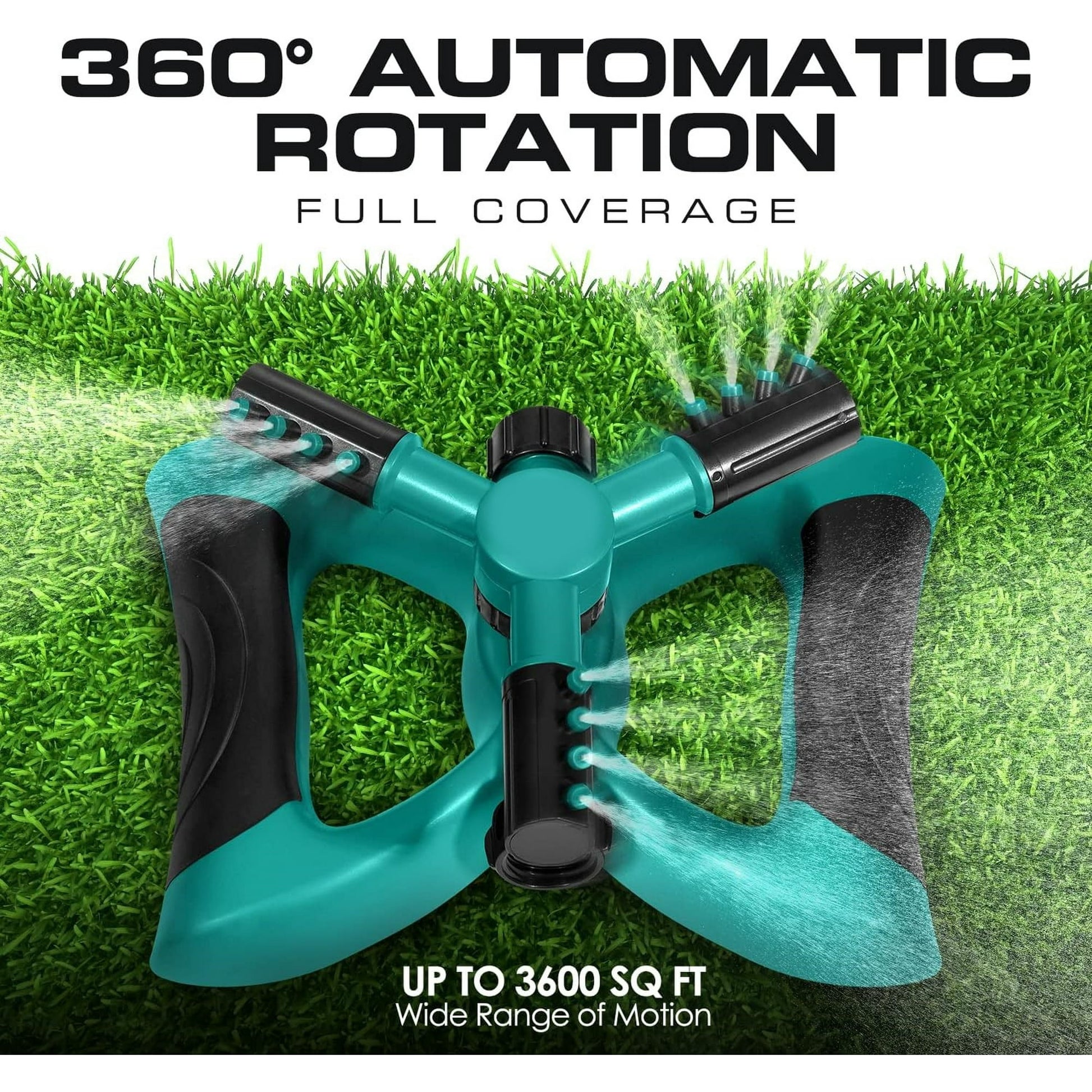 - 【Water Every Corner Of Your Garden】This grass sprinkler features 3 adjustable rotating arms and 12 built-in different angle spray nozzles that let you control the watering range to cover every corner of your garden.