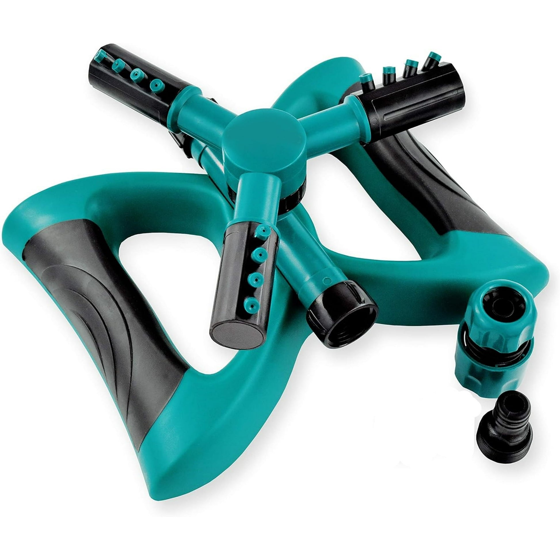- 【Easy To Use】Simply attach your garden hose to the lawn sprinkler hose connector supplied and turn on the faucet. As the water pressure increases the rotating arms will begin to spin and provide a rain like irrigation to your lawn.