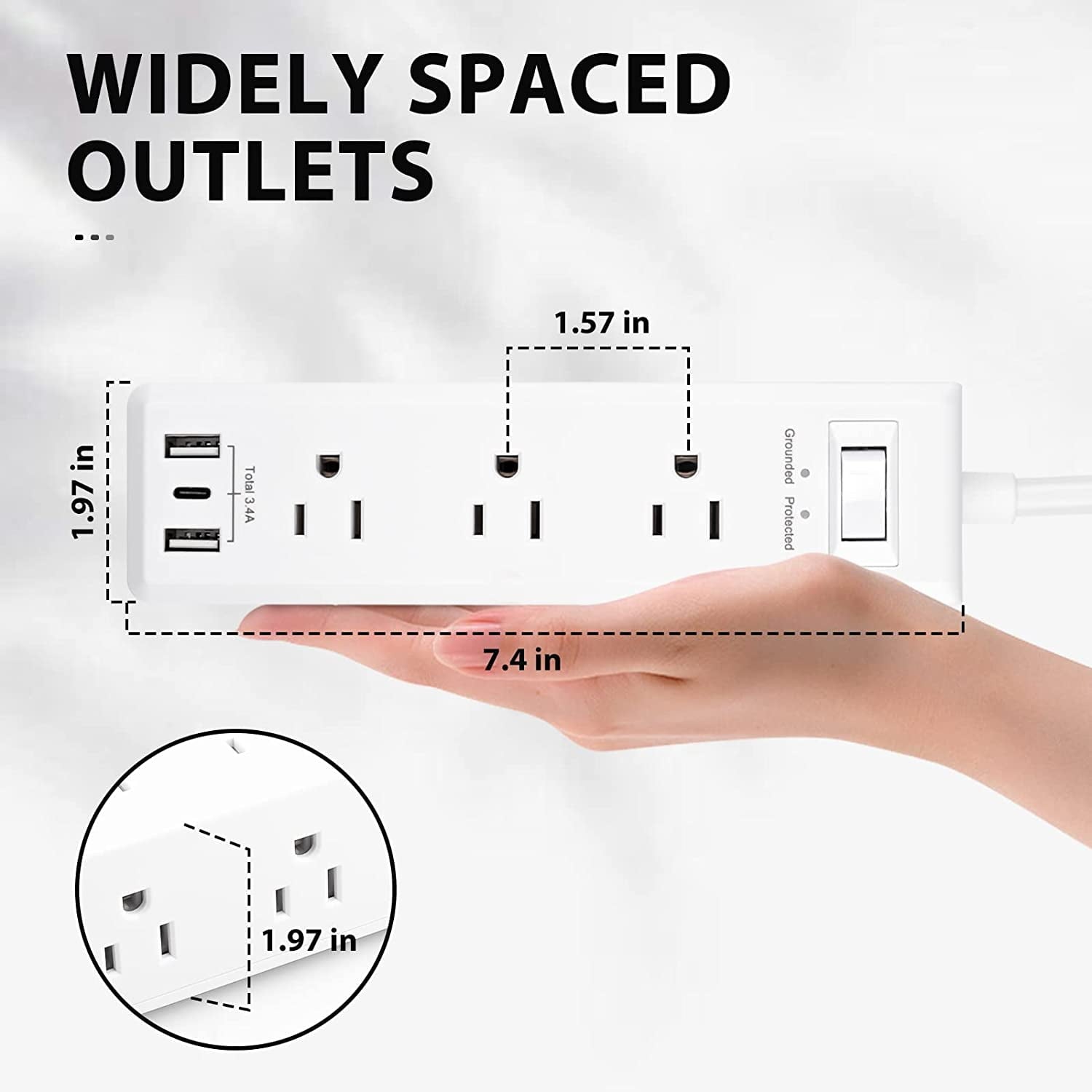 - 【3 Sided Space Saving Design】Multi sided compact power strip with widely space fits large power adapters without blocking each other. The compact design(1.97*1.97*7.4 inch) saves more space, perfect for the travel, home, dorm room, and office.