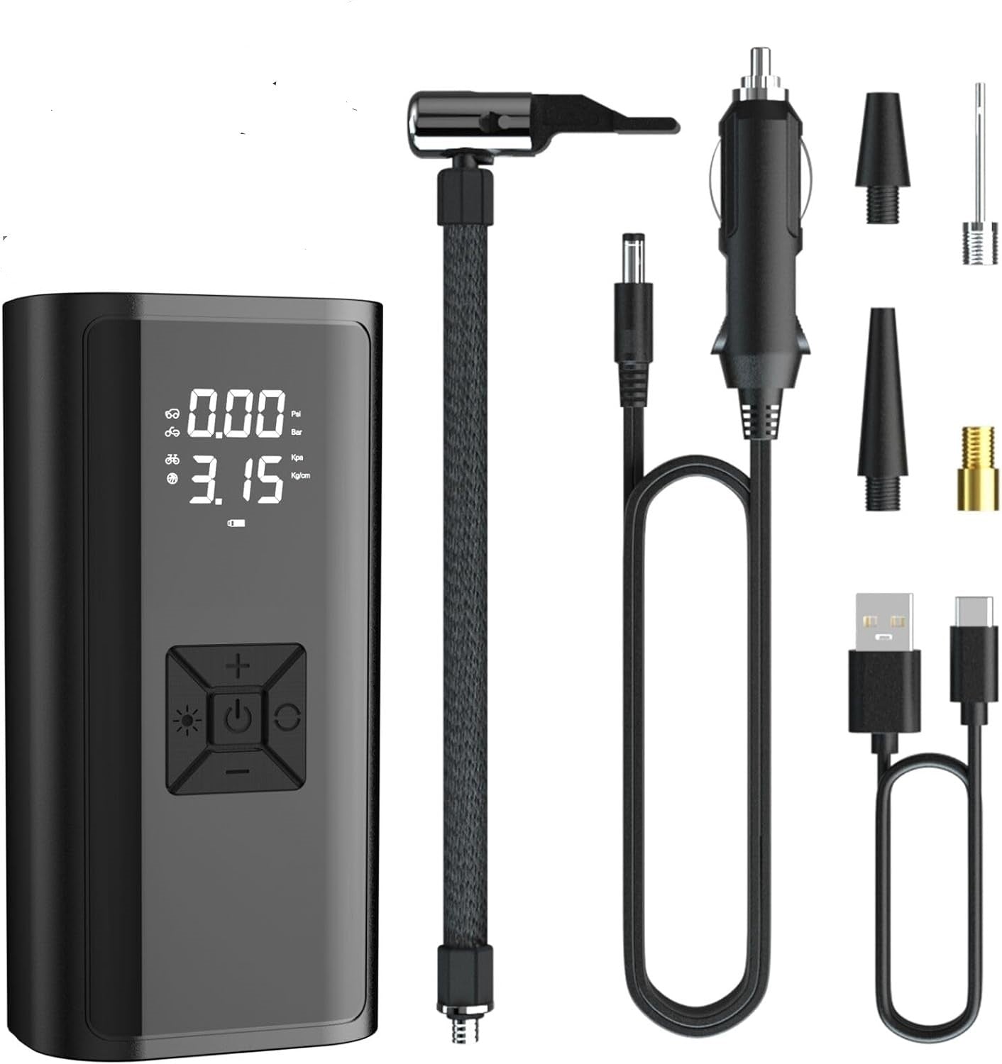 - 🚲【Portable Tire Inflator, Up to 150PSI /10.3Bar】BN-LINK rechargeable electric car and bike pump quickly inflate your vehicle's tires in just minutes with precision accuracy. Small and compact car air pump that fits your backpack, bike rack, glove box or trunk.