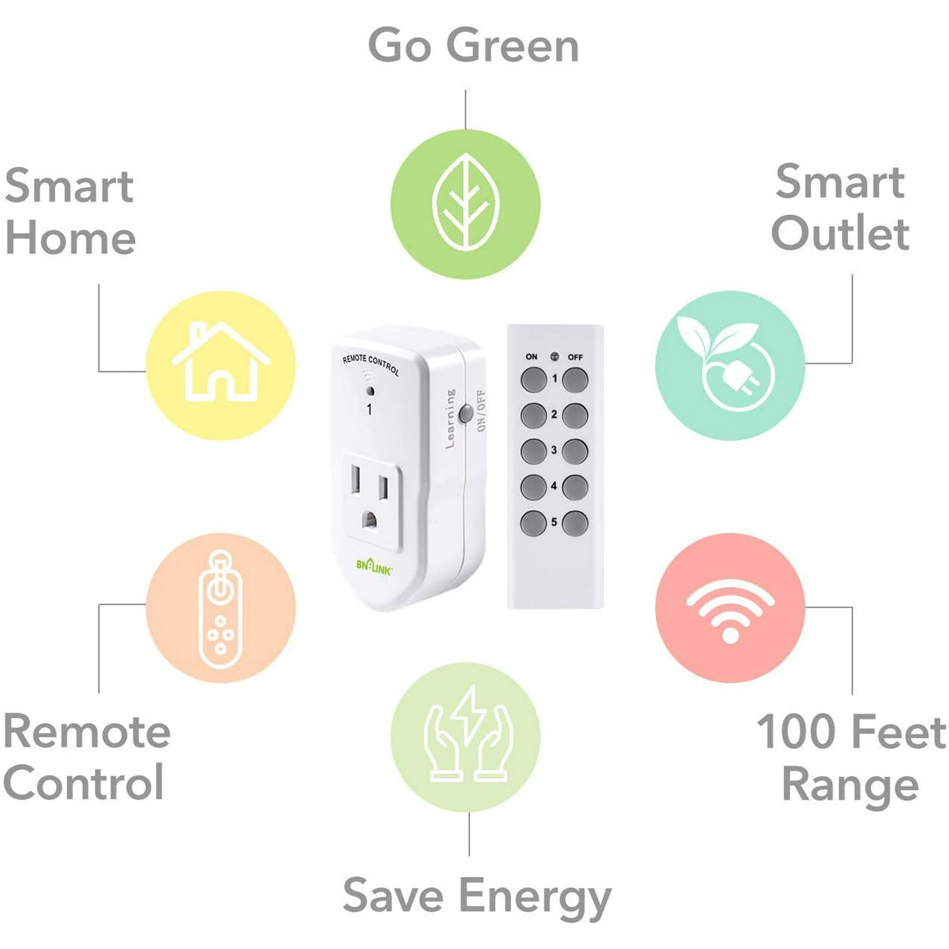 - 【READY-TO-GO】Each BN-LINK Wireless Remote Control Outlet kit contains everything you need to start (even the remote batteries!). Simply plug and play, or sync up the outlets to suit your needs.