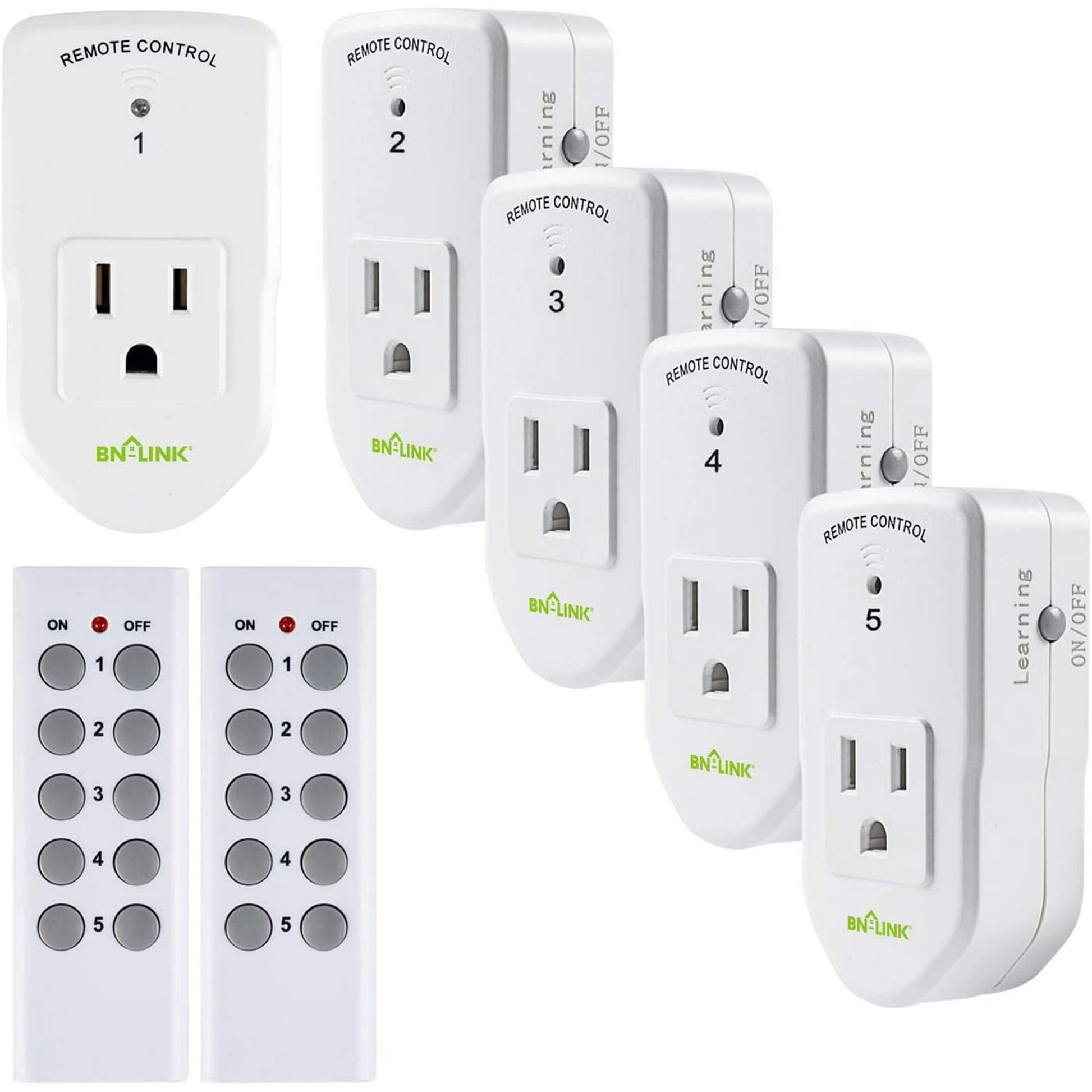 BN-LINK Wireless Remote Control Outlet with Extra Long Range, for Household Appliances, White (2 Remotes + 5 Outlets)
