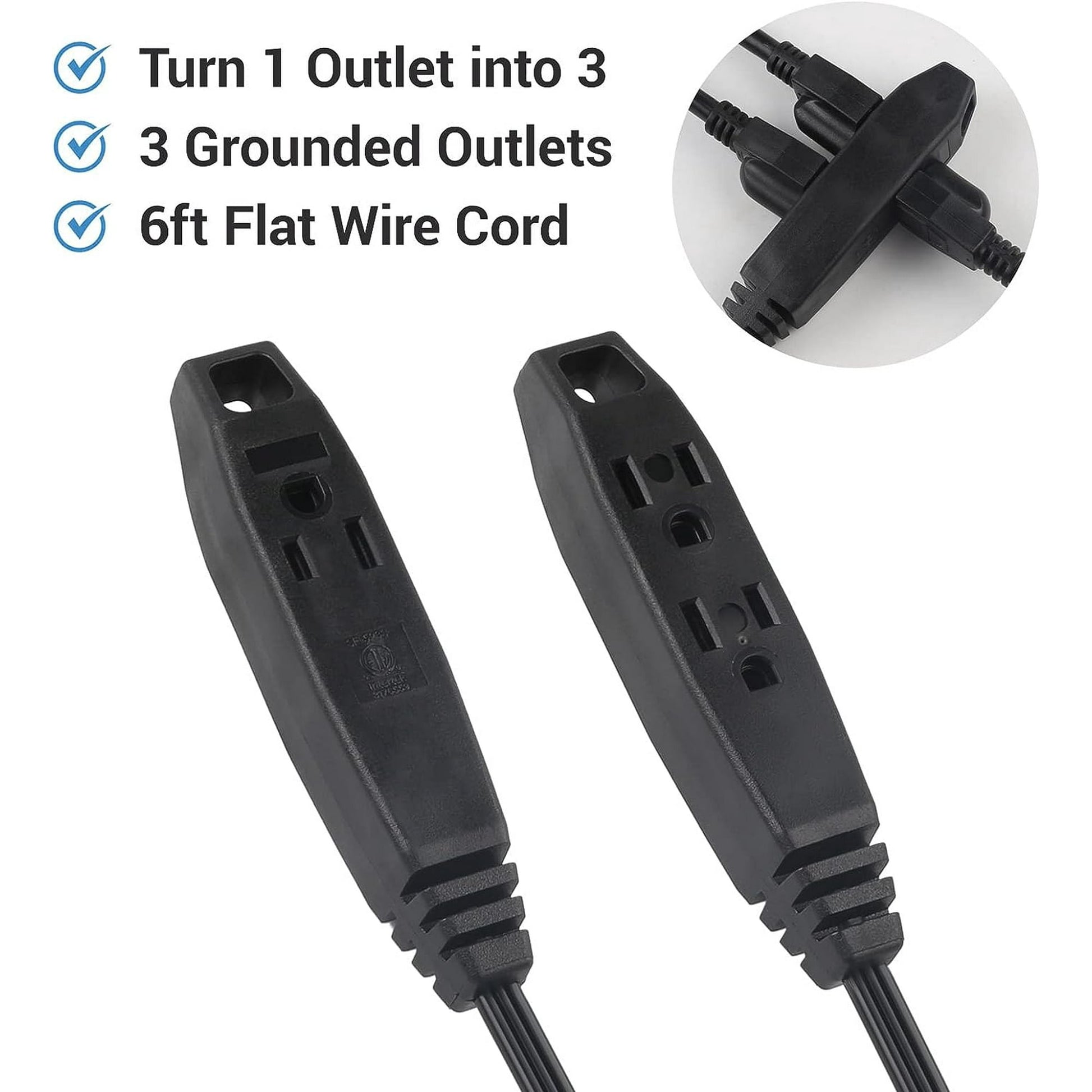 - POWER UP TO 3 DEVICES: This black 6ft indoor extension cord turns one outlet into 3, provides extended reach and convenience. It also has a built-in loop at the end of the cord so it may be hung over a work station if needed.
