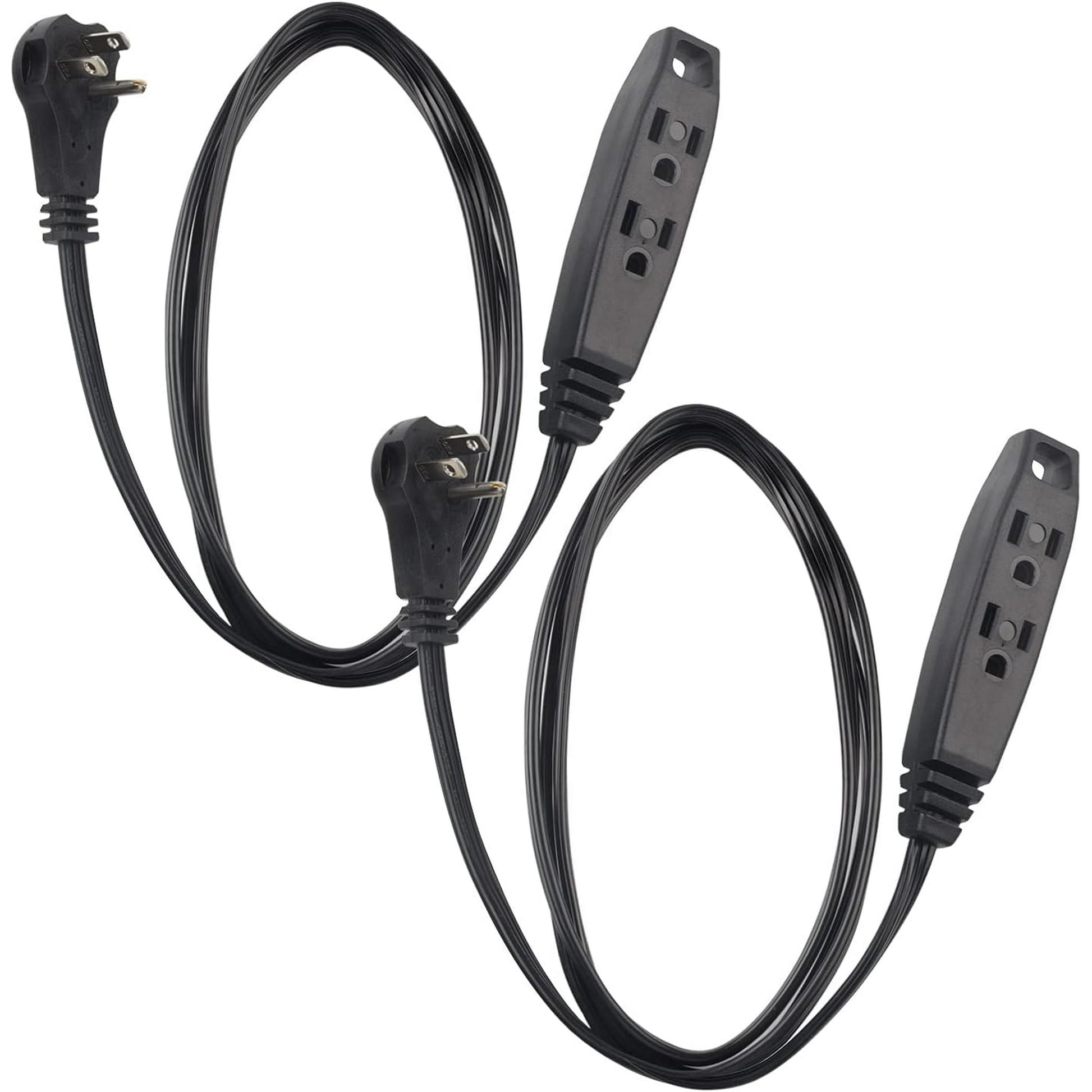 Clear Power 2-Pack 6 ft Indoor Extension Cord 3 Grounded Outlets 16/3 SPT-2, 3 Prong Low-Profile Flat Plug, Black