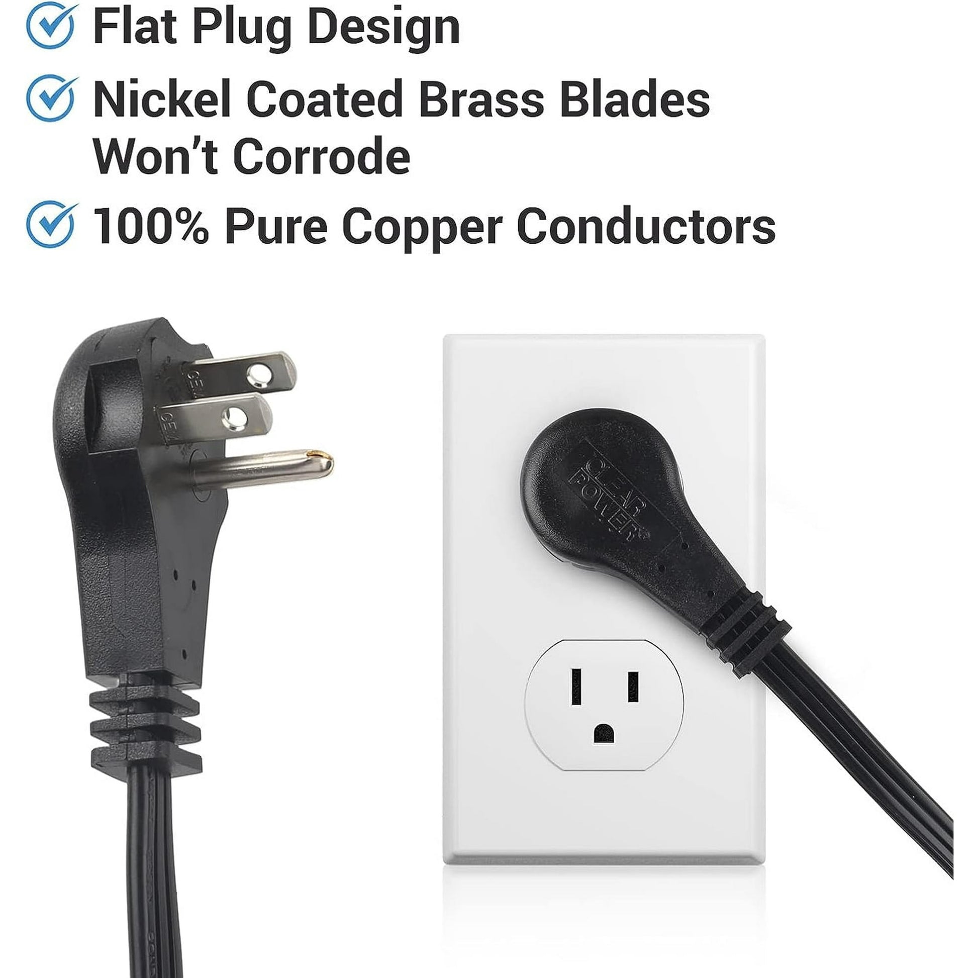 - SPACE-SAVING DESIGN: Low profile plug enables furniture to be placed safely against the wall without damaging the cord. The flat wire makes it easy to hide and use in tight spaces.