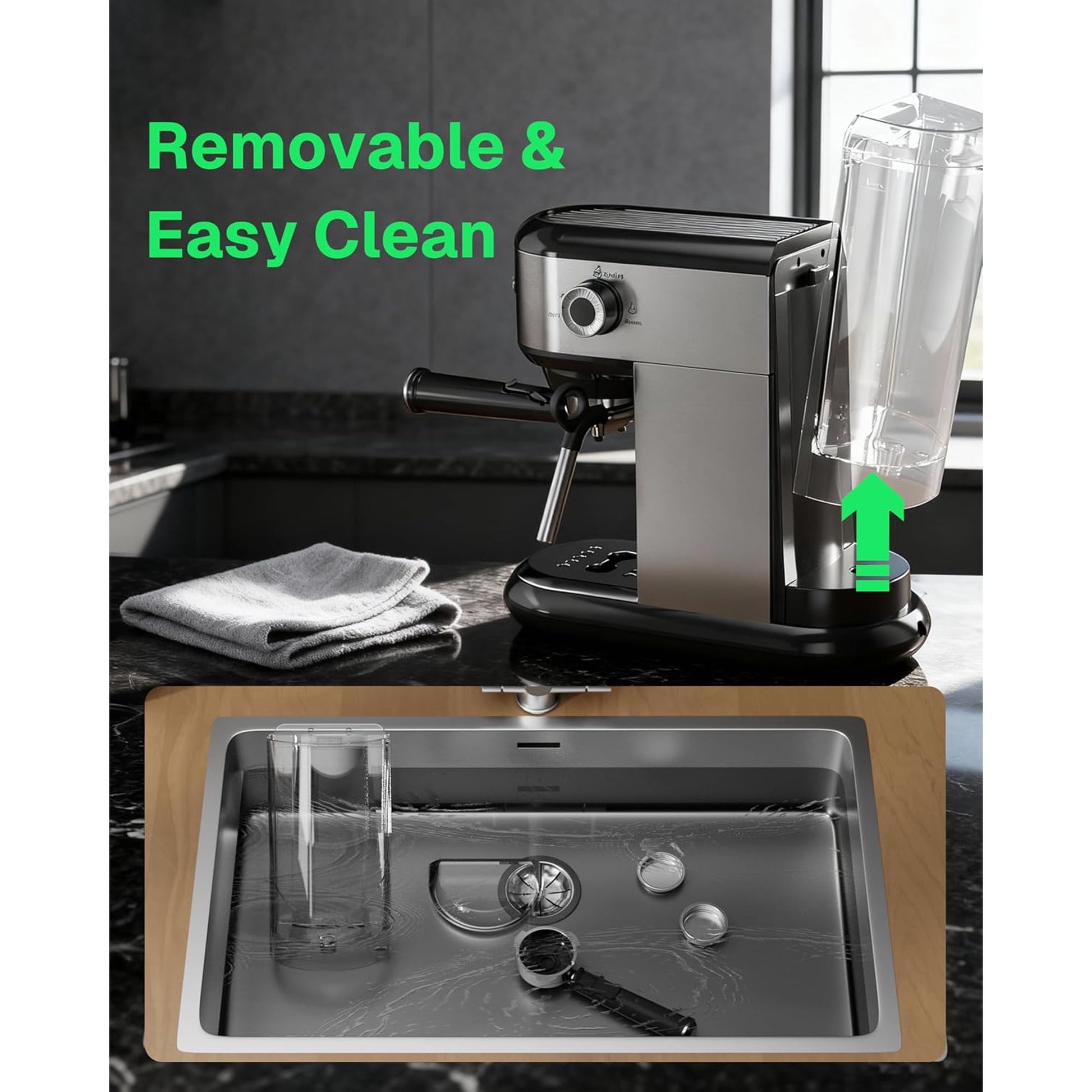 HBN Semi Automatic 20 Bar Espresso Machine with Steam Wand, Stainless Steel Coffee Maker for Cappuccino/Latte/Mocha,1450W