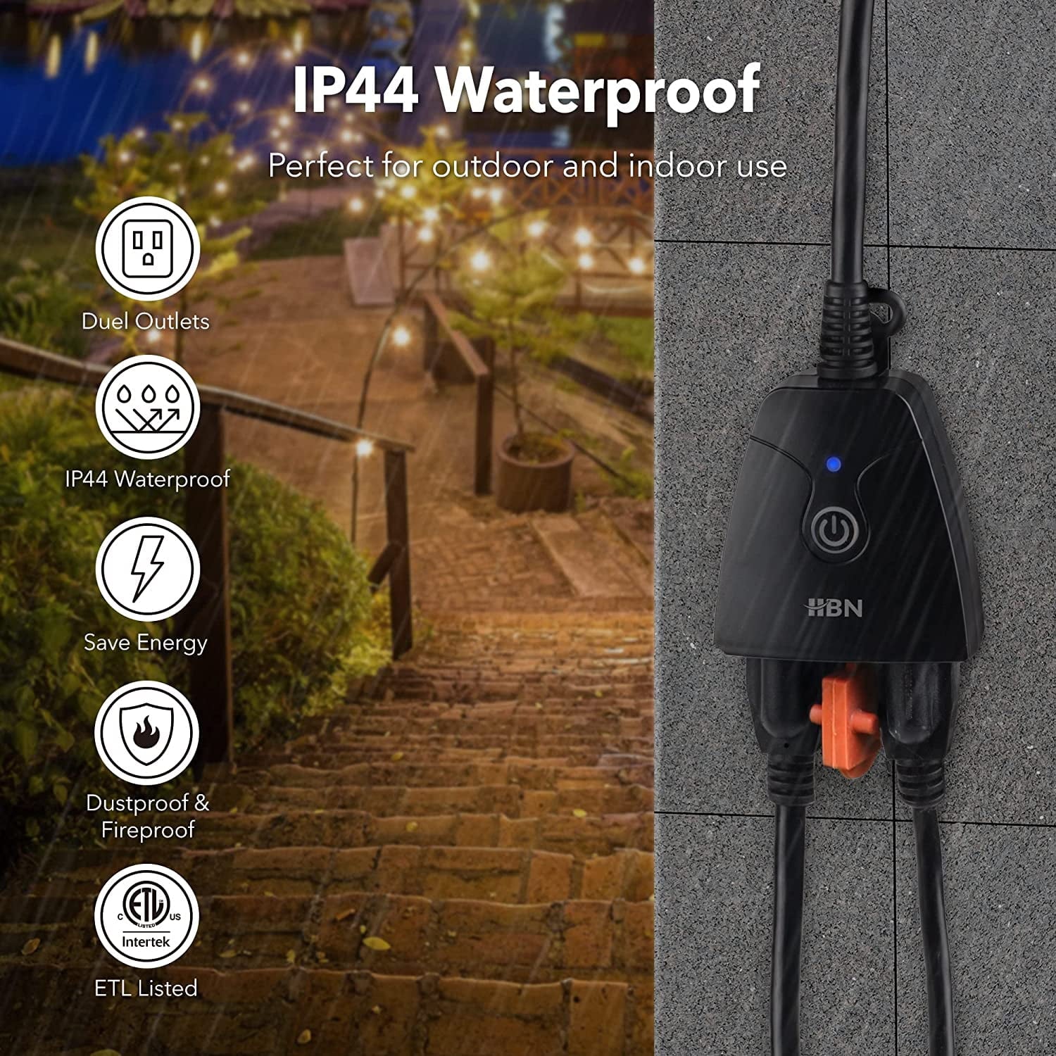 - 【Independent Outlet Controls】HBN outdoor smart plugs with 2 individually controlled outlets feature space-saving for users, which can work independently of one another.